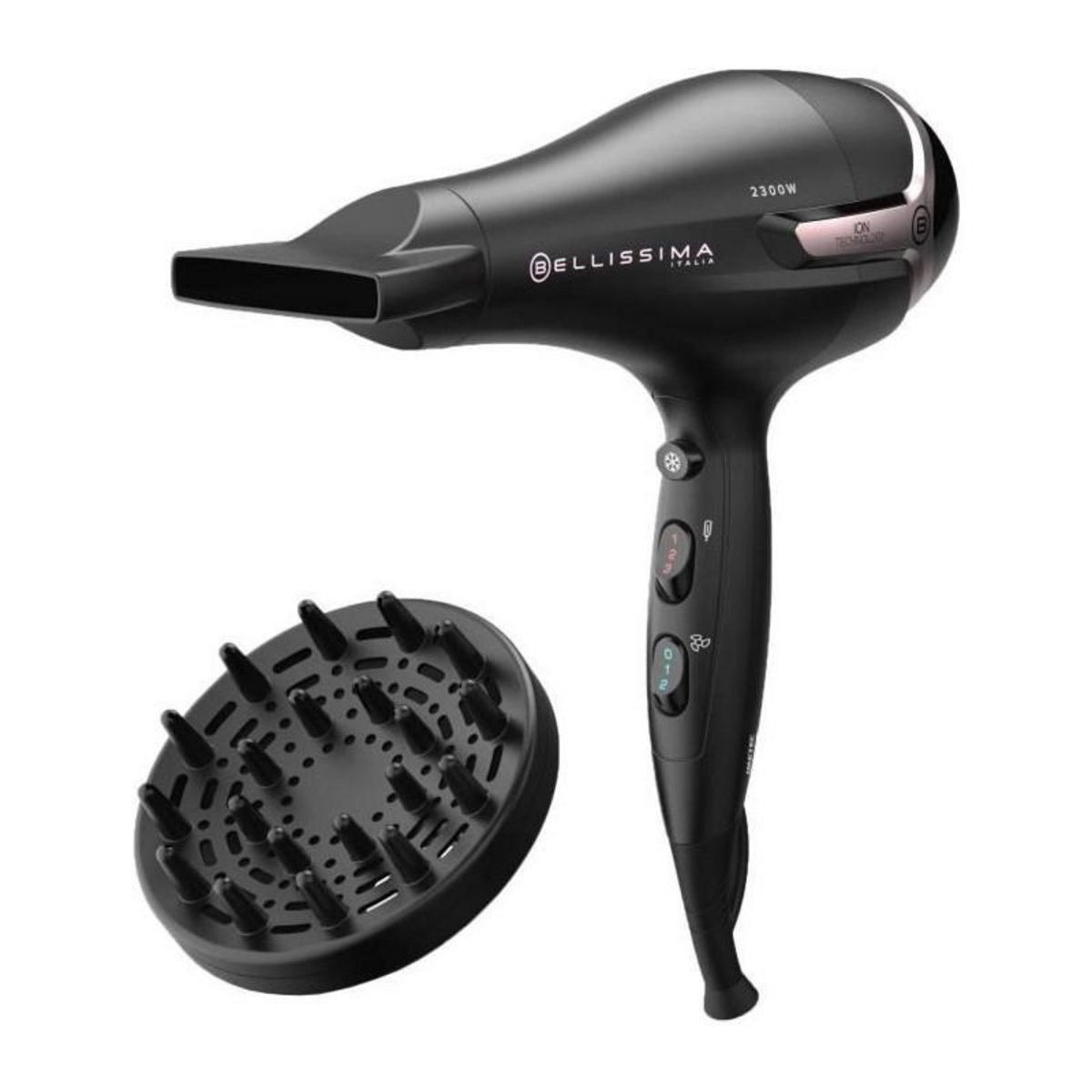 Seche Cheveux - Bellissima - Ionique S9 2300W - Pour Cheveux Lisses et Ondulés - 2 Vitesses 3 Températures - Concentrateur Dif