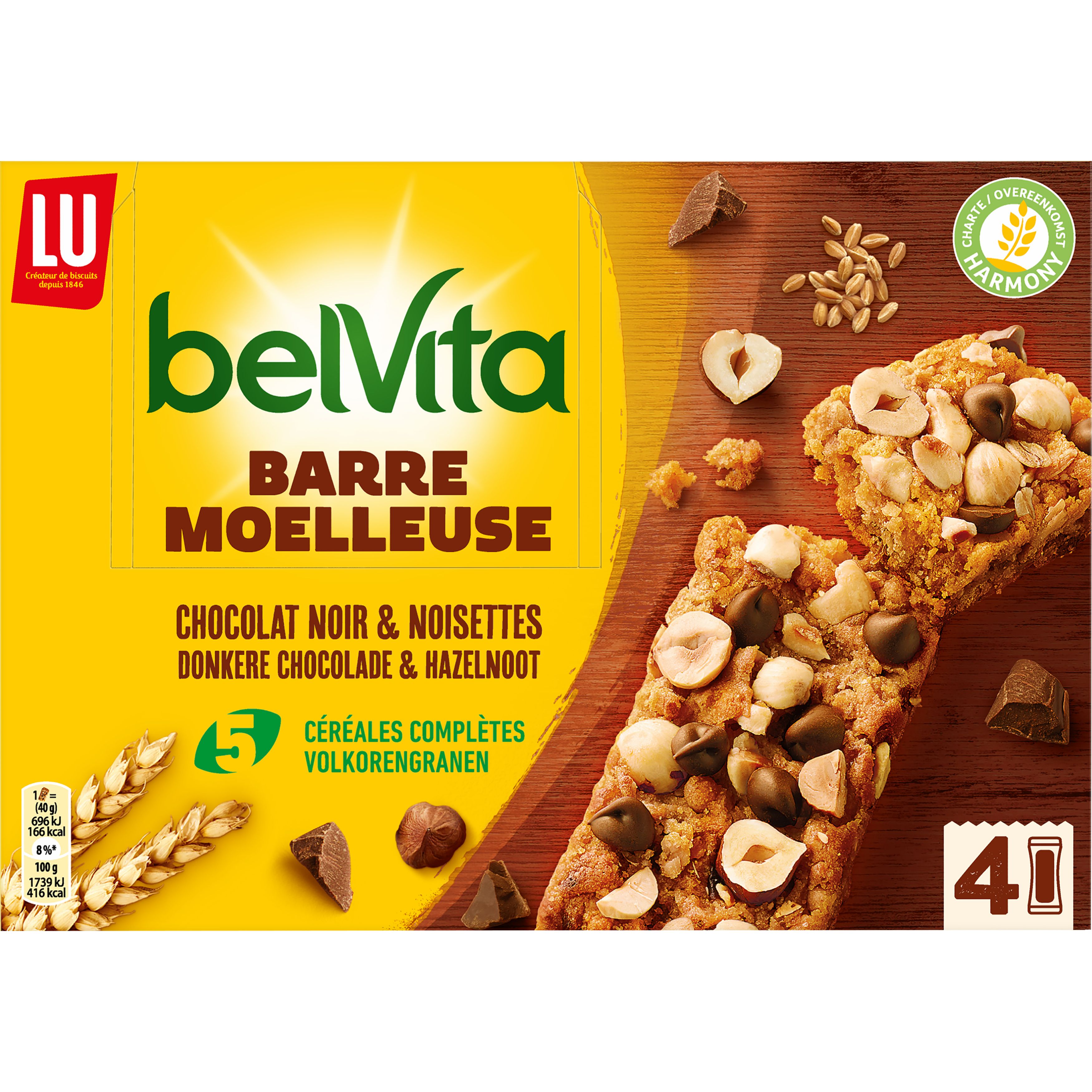 Découvrez les nouvelles Barres Moelleuses Belvita au chocolat noir et noisettes ! Délicieusement moelleuses et croustillantes, les barres Belvita sont source naturelle de fibres avec leurs 5 céréales complètes.