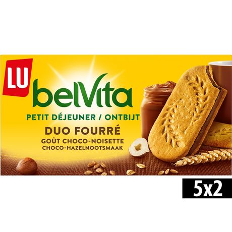 Les biscuits petit déjeuner BelVita fourrés au bon goût choco-noisette sont composés de 5 céréales complètes. Un choix gourmand et pratique à déguster à la maison ou à emporter. Ces délicieux biscuits emballés individuellement sont parfaits pour toute la famille adultes comme enfants dans le cadre d'un petit-déjeuner équilibré pour bien commencer la journée. Biscuits petit-déjeuner idéaux à accompagner d'une boisson chaude d'un fruit et d'un produit laitier.