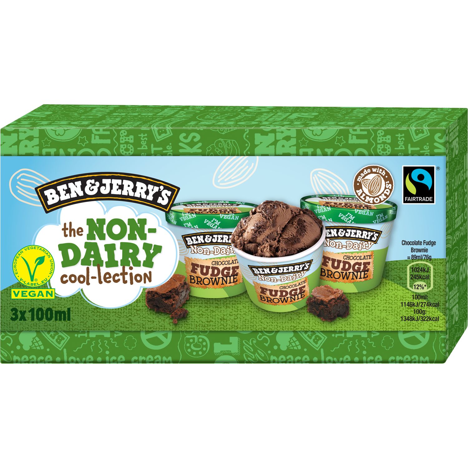 Glace chocolat à base d'amande, avec des morceaux de brownie au chocolat (13%).