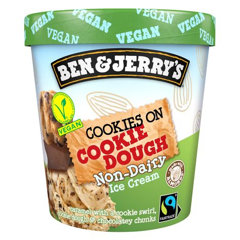 Glace caramel à base d'amande, avec des spirales de sauce cookie (6%), des morceaux de pâte à cookie aux pépites de chocolat (9%) et des inclusions au cacao (5%).
