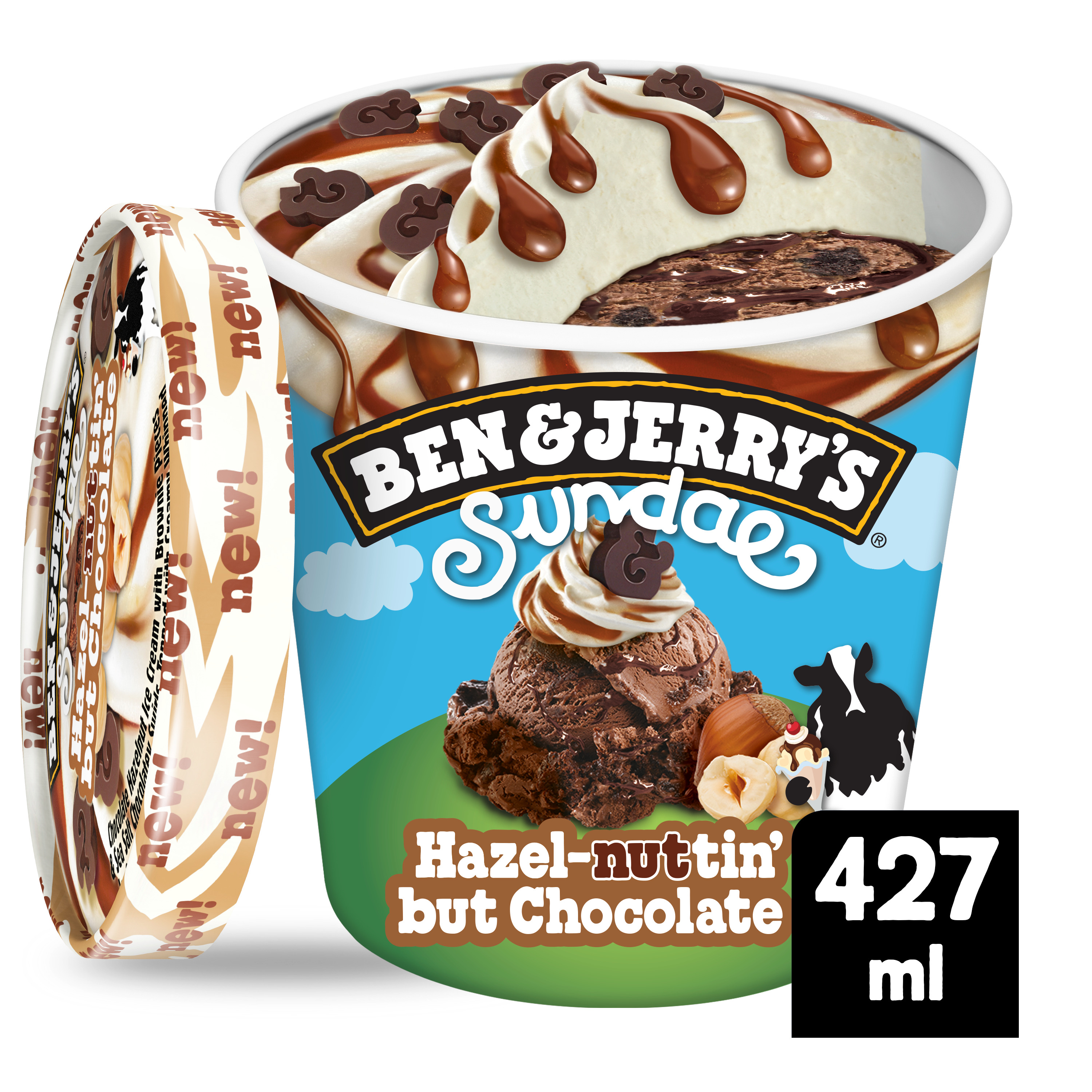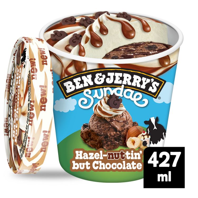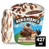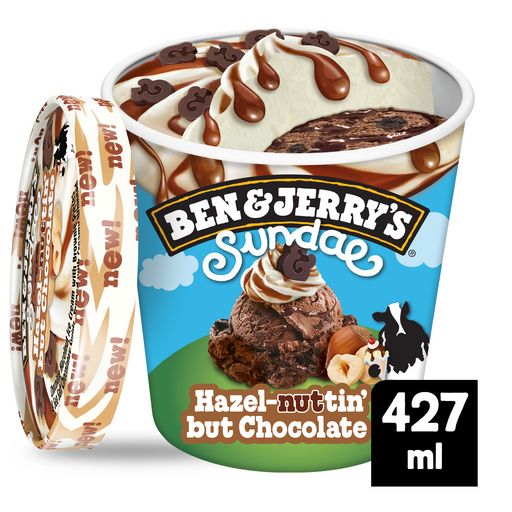 Découvre le Sundae Hazel-nutin' but Chocolate, la nouvelle crème glacée Ben & Jerry's avec une double texture, en pot de 427 ml.