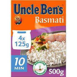 Ultra-facile à préparer, notre riz Basmati Uncle Ben’s® en sachet cuisson est prêt en 10 minutes. Il est caractérisé par sa saveur délicate et sa couleur naturellement blanche. Il apporte ainsi une touche exotique pour des repas sains et délicieux, quel que soit le jour de la semaine. Uncle Ben's® prend un double engagement: vous offrir un riz d'une qualité remarquable, tout en minimisant l'impact de sa culture sur l'environnement et les populations. Nutriscore A Note Yuka : 84/100 Riz basmati.