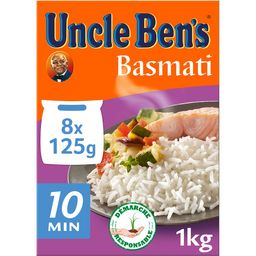 Ultra-facile à préparer, notre riz Basmati Uncle Ben’s® en sachet cuisson est prêt en 10 minutes. Il est caractérisé par sa saveur délicate et sa couleur naturellement blanche. Il apporte ainsi une touche exotique pour des repas sains et délicieux, quel que soit le jour de la semaine. Uncle Ben's® prend un double engagement: vous offrir un riz d'une qualité remarquable, tout en minimisant l'impact de sa culture sur l'environnement et les populations. Nutriscore A Note Yuka : 84/100 Riz basmati.