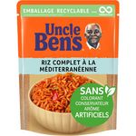 Riz complet précuit à la vapeur et cuisiné aux légumes méditerranéens. Notre riz Complet à la Méditerranéenne est délicatement précuit à la vapeur et préparé avec des courgettes et des poivrons soigneusement sélectionnés par Uncle Ben’s®. Son délicieux goût de tomates et d’herbes se mariera parfaitement avec tous vos plats méditerranéens. Savoureux, inratable et rapide à préparer en 2 minutes, en micro-ondes ou à la poêle. Il est sans colorant, ni conservateur, ni arôme artificiels. Nutriscore A Note Yuka : 90/100