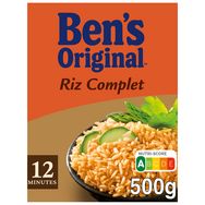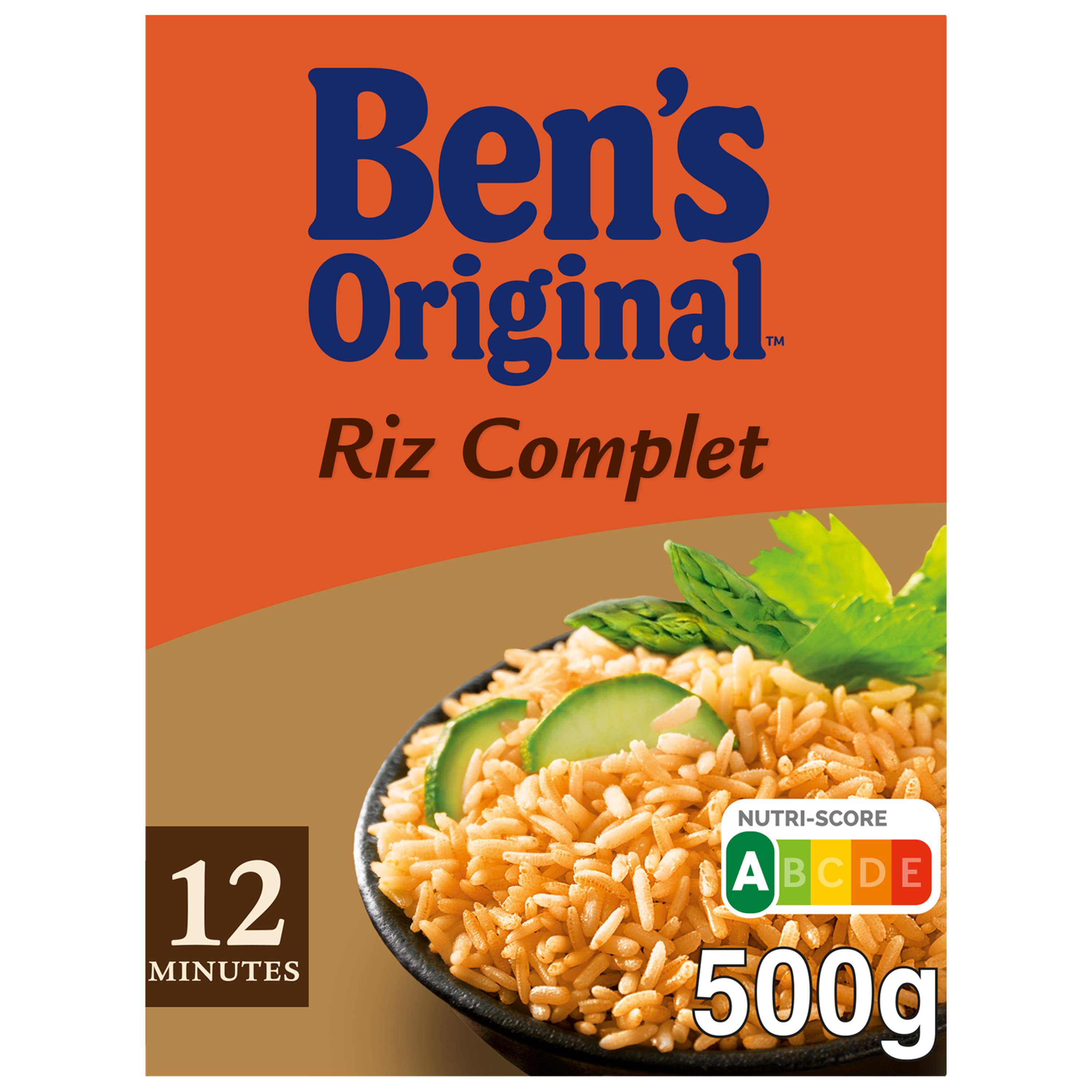 Le Riz Complet BEN'S ORIGINAL’s™ est un riz entier dont les grains ont préservé leur fine enveloppe protectrice contenant des minéraux, oligo-éléments et vitamines. BEN'S ORIGINAL’s™ a utilisé toute son expertise du riz pour vous offrir tous les bienfaits nutritionnels et la saveur de son riz complet. Ultra facile à préparer en 12 minutes, son délicat goût de noisette en fait un accompagnement délicieux et sain pour tous vos repas quotidiens. Nutriscore A Note Yuka : 78/100