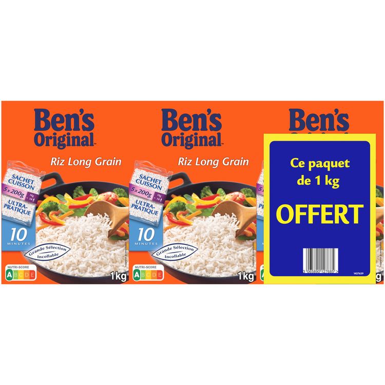 Toujours un succès…Méthode de cuisson1 FAITES CUIREFaites bouillir un grand volume d’eau dans une casserole. Plongez-y le sachet de riz et laissez cuire pendant 10 minutes.2 ÉGOUTTEZSortez le sachet de l’eau à l’aide d’une fourchette et laissez-le s’égoutter.3 SERVEZOuvrez le sachet grâce à l’encoche prédécoupée. Videz le sachet en saisissant le coin froid.Bon appétit!