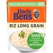 Naturellement bon, notre riz Long Grain Uncle Ben’s ® délicatement précuit à la vapeur accompagnera parfaitement tous vos plats. Savoureux, inratable et rapide à préparer en 2 minutes, en micro-ondes ou à la poêle. Il est sans colorant, ni conservateur, ni arôme artificiels. Nutriscore B Note Yuka : 84/100 Riz long grain étuvé précuit à la vapeur.