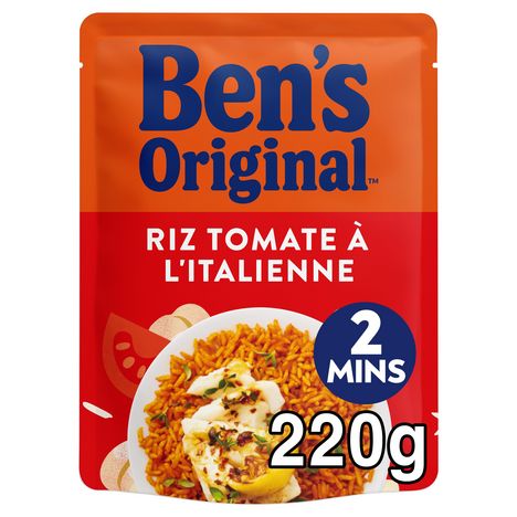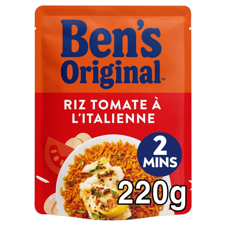 Le riz cuisiné à la Tomate à l'Italienne Ben's Original® est lentement précuit à la vapeur et cuisiné avec des tomates, de l'huile d'olive et des oignons. Pratique et rapide à préparer, le riz est prêt en 2 minutes au micro-ondes ou en 3 minutes à la poêle. Il agrémentera parfaitement vos plats méditerranéens. Il est fabriqué en France. Avec ce riz cuisiné, sans colorant, ni arôme, ni conservateur artificiels, vous pouvez créer des repas délicieux et sains à la fois. Nos riz express sont disponibles dans de nombreuses variétés de saveurs et viendront diversifier vos plats jours après jours. Nutriscore B Note Yuka: 75/100