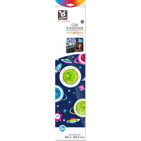 "Le pare-soleil de voiture Dazzle a été spécialement conçu pour créer un environnement coloré et beaucoup d'engagement pour votre bébé lors de vos déplacements. La lumière naturelle du jour crée des textures fascinantes à travers des bulles colorées qui stimulent visuellement les sens de votre enfant. Bien que le matériau en maille protège votre enfant du soleil, il filtre la lumière sans restreindre la vue, ce qui permet une sécurité maximale. Un produit indispensable pour une conduite amusante et divertissante.