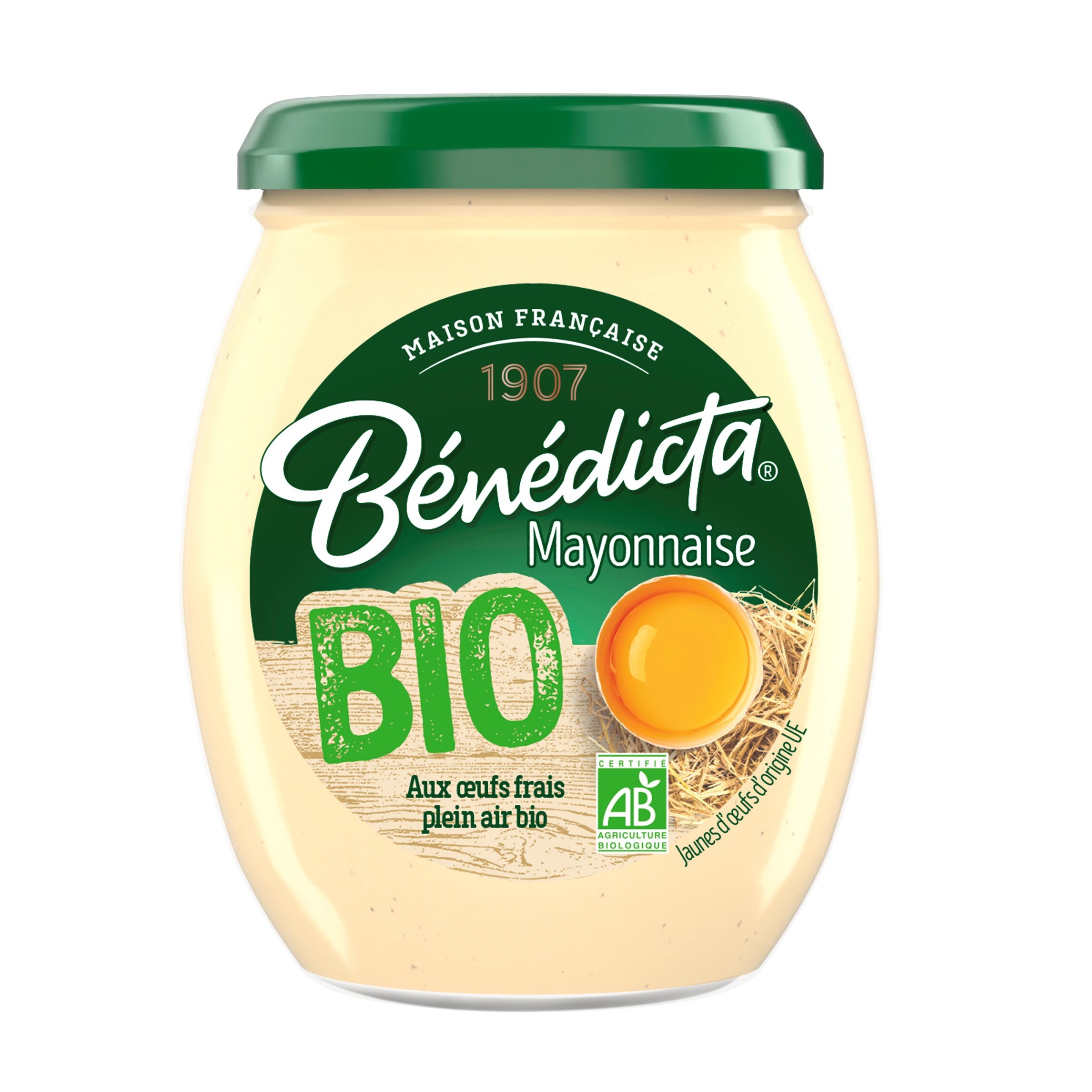 Mayonnaise bio aux œufs frais bio en bocal fabriqué en France