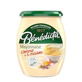 "Découvrez la mayonnaise Comme à la maison Bénédicta. La délicieuse saveur d'une mayonnaise authentique faite avec des ingrédients simples et bons, comme à la maison ! La mayonnaise qui vous fera fondre de plaisir est forcément chez Bénédicta. Au-delà de sa délicatesse légendaire, la mayonnaise a le pouvoir extraordinaire de se marier avec tous vos plats préférés ! De l'incontournable œuf mayo à la célèbre frite de pomme de terre, en passant par les crustacés, c'est la mayonnaise qui sublime vos repas comme aucune autre. Depuis 1907, la Maison Bénédicta élabore ses créations gourmandes avec passion à Seclin, dans les Hauts de France, en sélectionnant ses ingrédients avec soin. Chez Bénédicta, nous sommes fiers de cultiver le bon depuis le premier jour. Cette mayonnaise est disponible en bocal au format 255g et 500g et en flacon souple au format 390g."