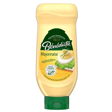 Ingrédients: Huile de colza 69%, eau, MOUTARDE de Dijon 5,9% (eau, graines de MOUTARDE, vinaigre d'alcool, sel), jaunes d'ŒUFS de poules élevées en plein air pasteurisés 5%, vinaigres (vinaigre d'alcool, vinaigre de vin blanc), jus de citron à base de concentré, sel, amidon modifié, épaississant : gomme xanthane, sucre, arômes, colorant : bêta-carotène.