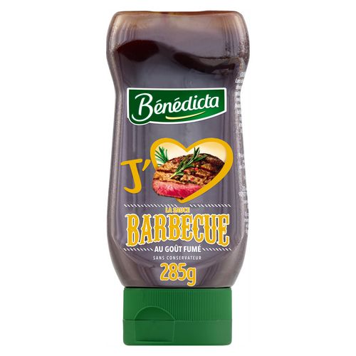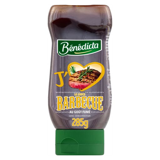 Ingrédients: Vinaigre d'alcool, sucre, eau, concentré de tomates, amidon modifié, sel, épices, arômes (MOUTARDE), arôme de fumé, colorant : caramel ordinaire, stabilisant : gomme xanthane.