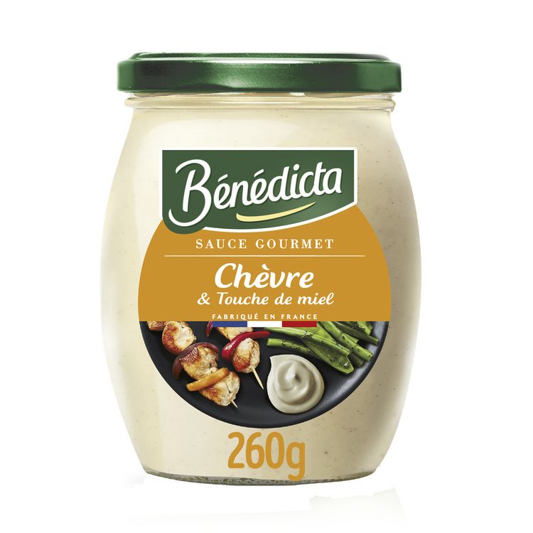 La sauce Chèvre Miel Bénédicta: une association inédite de sucré/ salé qui révélera vos légumes grillés, vapeurs ou même crus. Onctueuse et douce, elle est aussi idéale pour vos sandwichs.