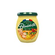 "Découvrez la sauce Curry Bénédicta. L'exotisme & l'onctuosité d'une sauce culinaire au Curry légèrement épicée, qui accompagnera parfaitement vos plats de viandes blanches ainsi que du riz ou des pommes de terre. Que diriez-vous d'accompagner vos viandes chaudes et froides, brochettes, bagels et sandwiches chauds ou froids avec une délicieuse sauce Gourmet Curry? Essayez les sauces de la gamme Gourmet Bénédicta, idéales pour accompagner les plus grands plats et transformer vos assiettes. Voilà des alliées de taille pour sublimer tous vos plats. Sauce Gourmet au Bleu, Ail & Fines Herbes, Truffe d'Eté, Curry… elles se déclinent pour toutes les envies. Depuis 1907, la Maison Bénédicta élabore ses créations gourmandes avec passion à Seclin, dans les Hauts de France, en sélectionnant ses ingrédients avec soin. Chez Bénédicta, nous sommes fiers de cultiver le bon depuis le premier jour. Cette sauce est disponible en bocal au format 260g."