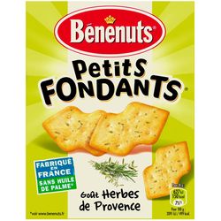 Leur secret ? Ils vous ont concocté de délicieux crackers : Les Petits Fondants®, des petites bouchées gourmandes, à savourer en famille ou entre amis ! Leur recette ! Des ingrédients de qualité et sans huile de palme* pour un maximum de plaisir ! *voir www.benenuts.fr Pour un Apéritif réussi, découvrez aussi Bénénuts 3D's Bugles goût nature Bénénuts Twinuts goût salé Bénénuts Fritelle goût nature Partagez un moment convivial avec Bénénuts, prononcez plutôt "Ben & Nuts" ;-) Le duo de choc qui rendra vos apéritifs mémorables ! Retrouvez toute la gamme sur www.benenuts.fr Crackers de blé goût herbes de Provence