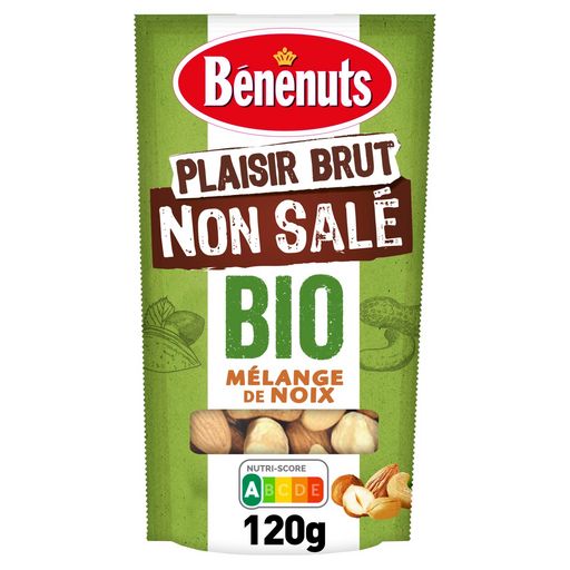 Mélange de noix grillées biologiques Découvrez le goût intense et authentique des noix Plaisir Brut non salées⁽¹⁾ Bio. Notre mélange de noix 100% Bio vous garantit des pratiques agricoles respectueuses de l'environnement. Elles sont également naturellement source de : √ Magnésium √ Fibres ⁽¹⁾ Sans sel ajouté.