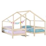 A la place d'un lit superposé, donnez à la chambre de vos enfants de l'originalité avec ce lit cabane conçu en bois massif qui regroupe deux lits simple.