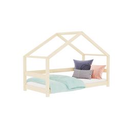 Lit montessori en bois massif de 90 x 200 cm, avec barrière de sécurité. Ce lit en forme de cabane donnera à la chambre de votre enfant de l'originalité !