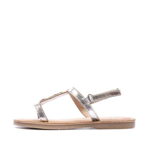 Sandales fille de la marque Beppi Tige basse en cuir et synthétique Sandales plate Coloris : Argenté Fermeture à scratch Perles sur la tige