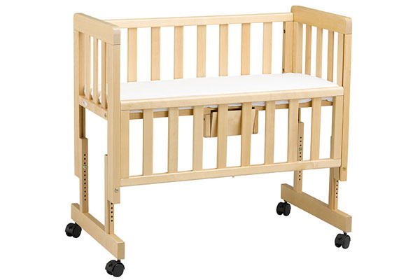 Berceau en bois massif ayant un coté coulissant pouvant être fixé au lit de la maman. Réglable en hauteur tête et pieds (fonction anti-régurgitation comme à la maternité). Convertible en petit banc.