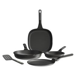Berghoff 3950601 Ces poêles de taille idéale (20 cm et 24 cm) sont conçues pour vous aider à préparer votre petit-déjeuner ou votre dîner. Cette superbe poêle à griller (26 cm) est le compagnon idéal pour saisir vos mets préférés, tandis que la poêle à crêpes (25 cm) vous aidera à préparer vos crêpe
