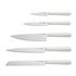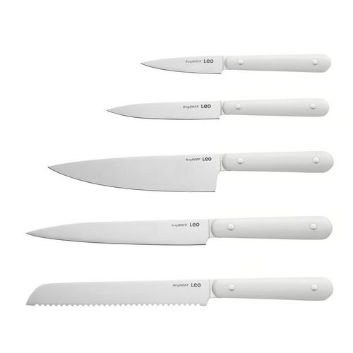 Berghoff 3950470 L'ultime ensemble de couteaux polyvalents comprenant un couteau à éplucher, un couteau d'office, un couteau à découper, un couteau à pain et un couteau de chef. Le couteau à éplucher et le couteau d'office sont la solution parfaite pour tous vos petits travaux de coupe. Un couteau à découper qui se faufile dans la viande et la volaille et un couteau à pain qui coupe le pain en tranches régulières. Enfin, un couteau de chef polyvalent pour trancher et découper vos repas quotidiens.