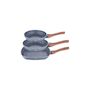 La batterie de cuisine Forest Line de Berlinger-Haus comprend 3 poêles conçues pour une cuisson saine et efficace : une poêle à frire de 20 cm (1,0 L), une poêle à frire de 24 cm (1,7 L) et une poêle à griller de 28 cm (2,1 L). Fabriquées en aluminium forgé léger avec un revêtement granit-marbre triple couche anti-adhésif, ces poêles permettent une cuisson facile sans PFOA, plomb ni cadmium. Les poignées ergonomiques en silicone imitation bois offrent confort et style. Compatibles avec tous les types de plaques, y compris induction grâce au système Turbo induction, elles sont également compatibles lave-vaisselle. Cette batterie assure une économie d'énergie de 35% tout en étant respectueuse de l'environnement.