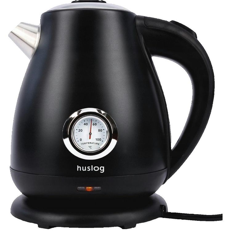 Découvrez la bouilloire électrique Huslog de la marque Berlinger-Haus, d'une capacité de 1,7 litre. Elle combine un design vintage élégant avec des fonctionnalités pratiques telles qu'un thermomètre intégré, une base rotative à 360°, un indicateur de niveau d'eau sous la poignée, un filtre anticalca