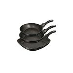 Découvrez l'ensemble de poêles Berlinger-Haus fabriqué en aluminium forgé, comprenant trois poêles de tailles 20 cm (capacité 1,0 L), 24 cm (1,7 L) et 28 cm (2,1 L). Chaque poêle possède un revêtement antiadhésif en marbre à trois couches, garantissant une cuisson saine avec peu de matières grasses.