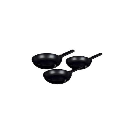 L'ensemble de poêles Berlinger-Haus Turbo Induction en noir mat est conçu pour répondre aux besoins quotidiens en cuisine. Il comprend trois poêles de tailles différentes, compatibles avec tous les types de plaques de cuisson, y compris l'induction. Fabriquées en aluminium de haute qualité avec un r
