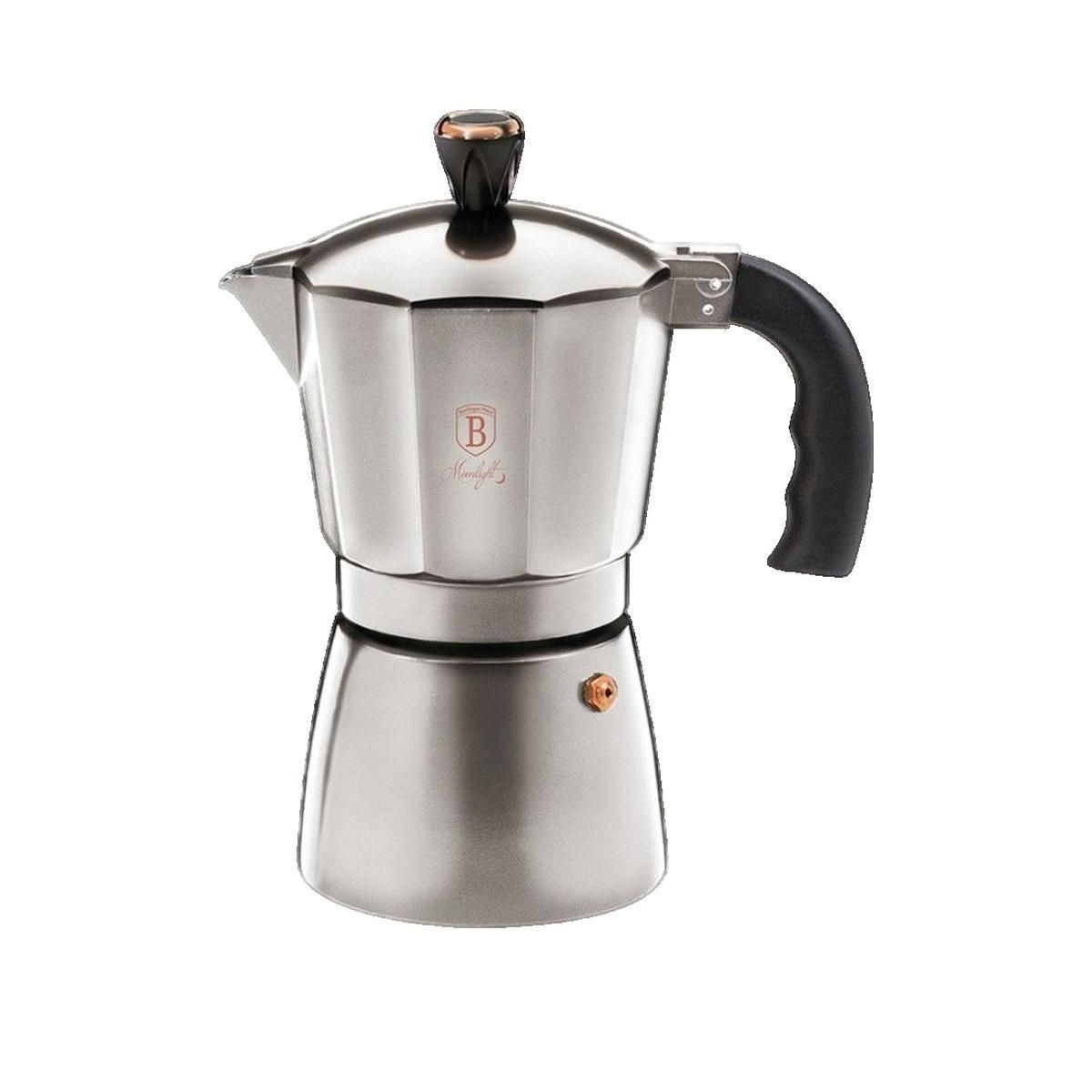 La machine à expresso Berlinger Haus permet de préparer un espresso aromatique rapidement. Elle offre une capacité jusqu'à 6 tasses, parfaite pour une utilisation quotidienne. Son design moderne et sa finition gris en aluminium de haute qualité apportent une touche d'élégance à votre cuisine. Les poignées Soft Touch garantissent une prise confortable. Compatible avec tous les modèles de cuisinières sauf induction. Avec un poids léger de 1.16 kg, elle est facile à manipuler et à utiliser.