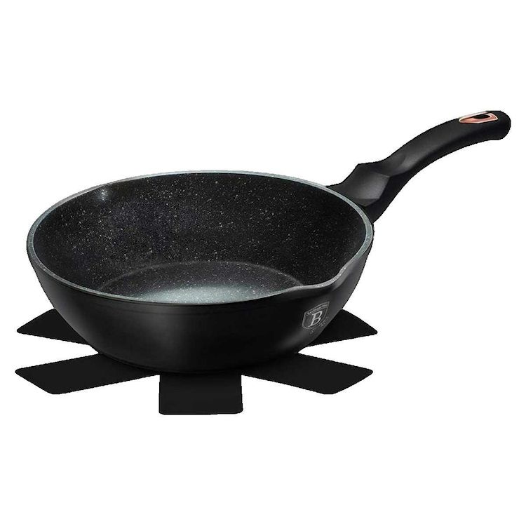 Découvrez la poêle Berlinger-Haus de la collection Black Rose, fabriquée en aluminium forgé avec un revêtement granitique triple. Cette poêle noire aux accents rose doré est compatible avec tous les types de cuisinières et chauffe rapidement tout en économisant jusqu'à 35% d'énergie. Elle est équipé