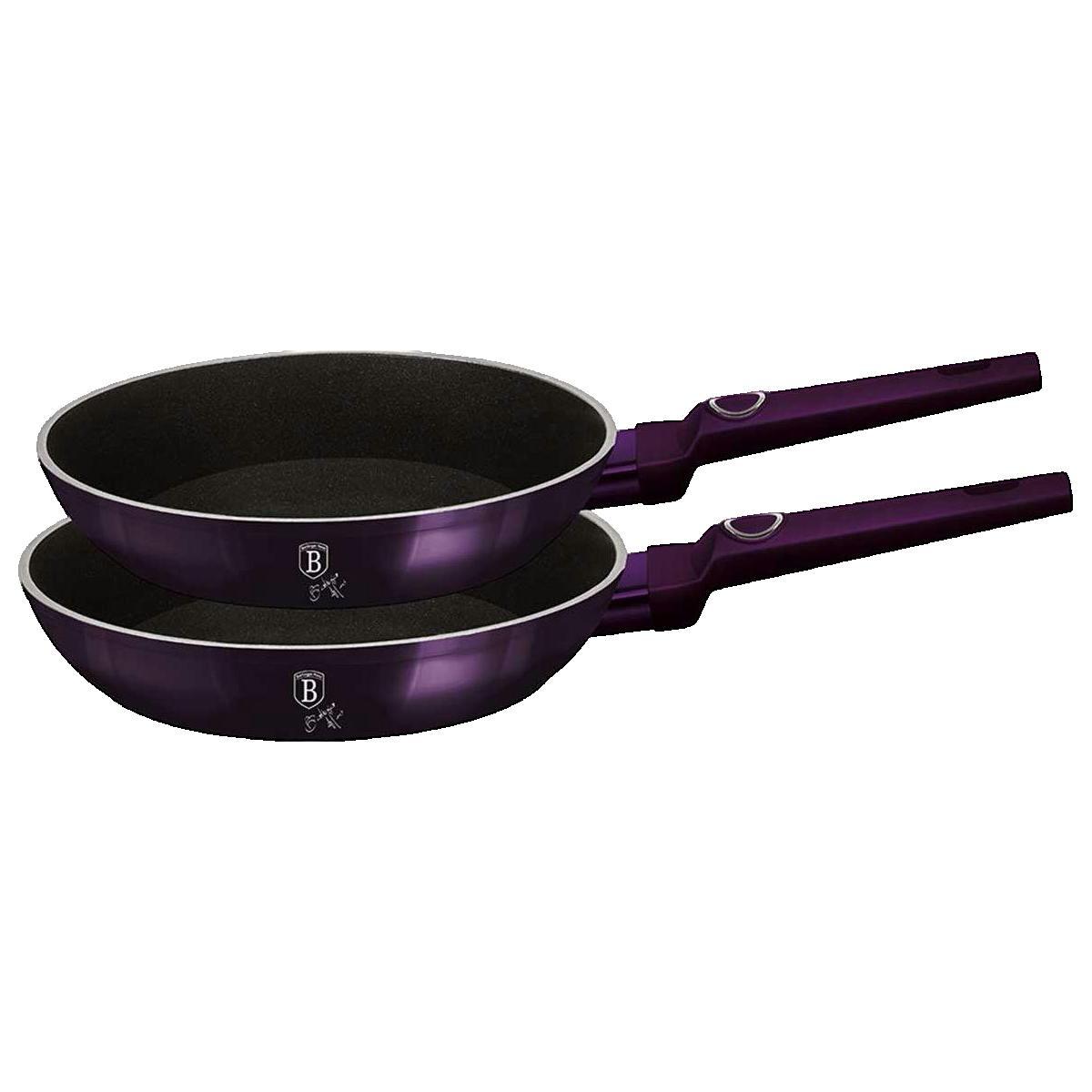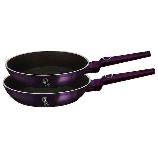 Découvrez le set de poêles Berlinger-Haus de la collection Purple Eclipse, fabriqué en aluminium forgé avec un revêtement en titane. Ce set comprend deux poêles de 22 cm et 26 cm, compatibles avec toutes les sources de chaleur, y compris l'induction, grâce au système Turbo Induction qui permet un ch