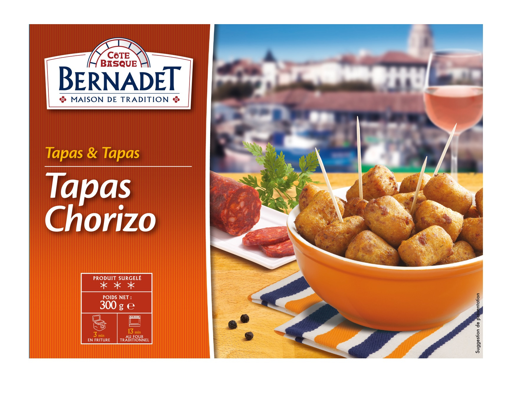 EN FRITURE : Faire chauffer de l’huile à environ 170°C. Plonger délicatement les tapas congelées dans la friture. Réchauffer 3 minutes. Disposez sur un papier absorbant, servez.