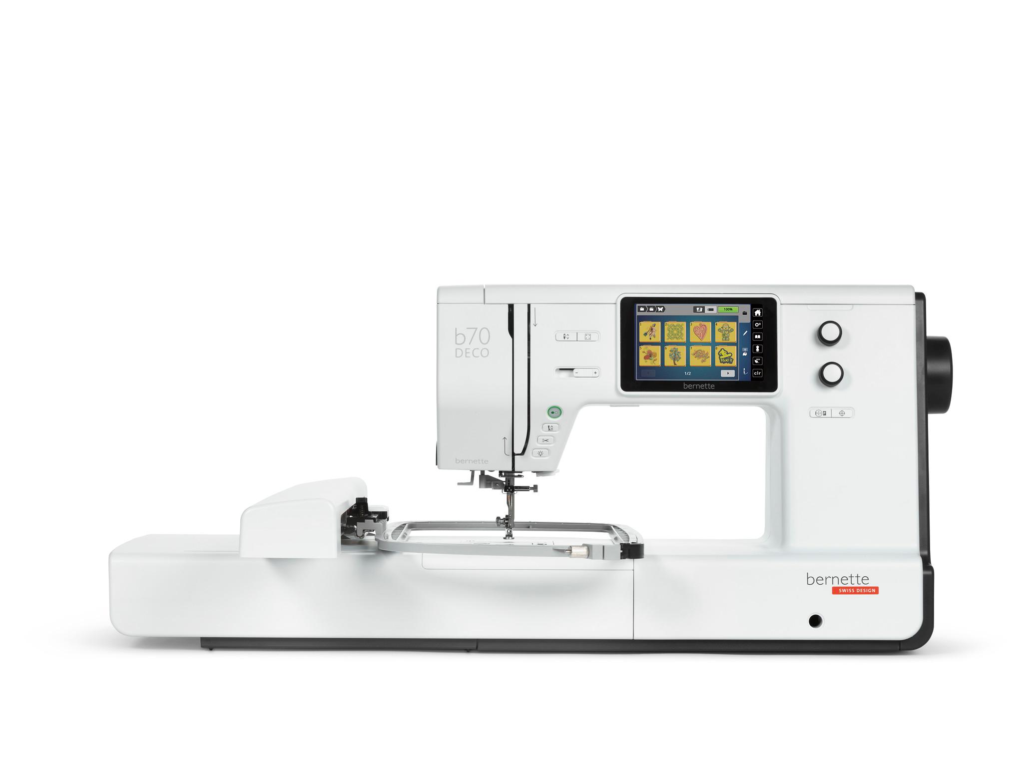 La machine b70 DECO est une vraie spécialiste. Cette machine exclusivement capable de broder, possède toutes les fonctionnalités requises pour personnaliser tes vêtements ou tes accessoires. Avec plus de 200 motifs de broderie, tu pourras positionner le motif de tes rêves en un tour de main. Et en plus, tu peux modifier directement le motif choisi sur l'écran tactile. Tu as envie de motifs personnalisés ? Télécharge et enregistre tes propres motifs de broderie grâce à une clé USB. Décuple ta créativité grâce aux modules de Lettering et d'Editing du logiciel de broderie BERNINA Toolbox.