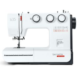 La Bernette 35 est une machine à coudre mécanique sans boutons de commande informatisés. Le réglage de la largeur, de la longueur et du motif de point s'effectue très facilement à l'aide des trois boutons . La tension peut être réglée pendant la couture à l'aide du volant facile d'accès. La bernette 35 a une fonction boutonnière automatique en 1 étape facile et simple à utiliser. Avec un total de 23 points, dont des points utilitaires et des points décoratifs, tu pourras laisser libre cours à ta créativité et obtenir une qualité de point exceptionnelle.