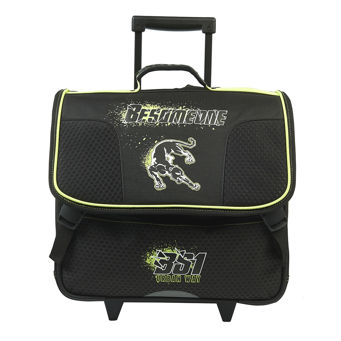 2 compartiments intérieurs. Poche extérieure zippée. Bretelles ergonomiques matelassées et poignée ergonomique. Dos matelassé. 1 poignée de traction extractable. 2 roulettes et protège-roulettes incorporés. Polyester (38 x 16 x 37 cm)