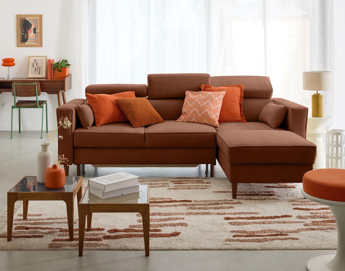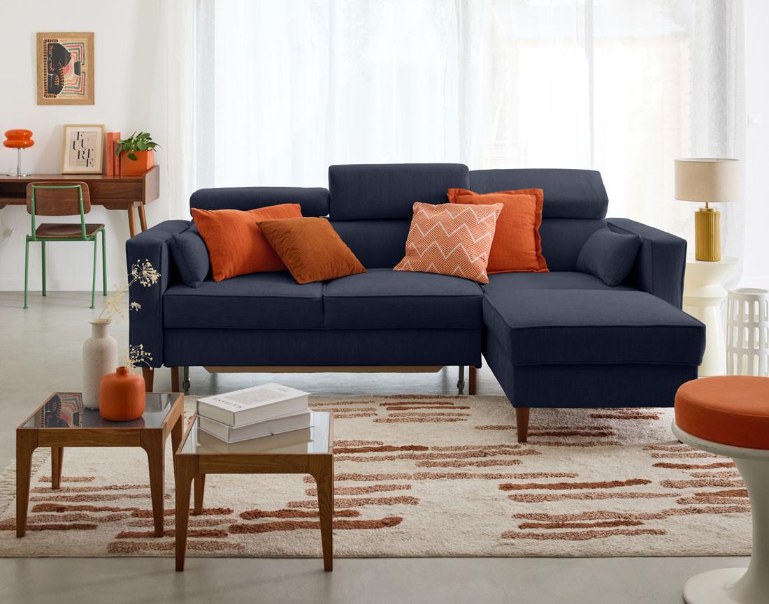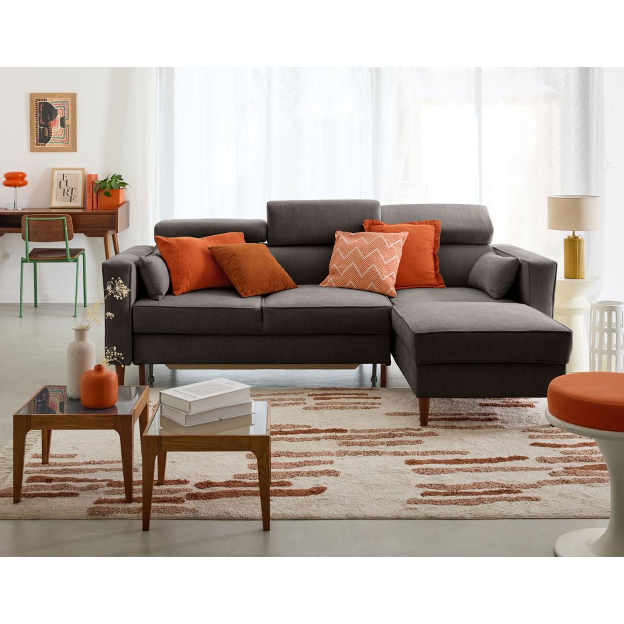 Alicante - canapé d'angle réversible convertible avec têtières - coffre - 4 places - en tissu texturé