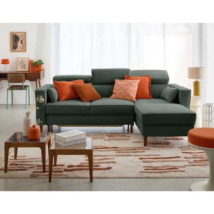 - Présentation de la collection : La collection Alicante propose un canapé d'angle réversible et convertible en tissu doux, avec 3 têtières ajustables, alliant confort et flexibilité.