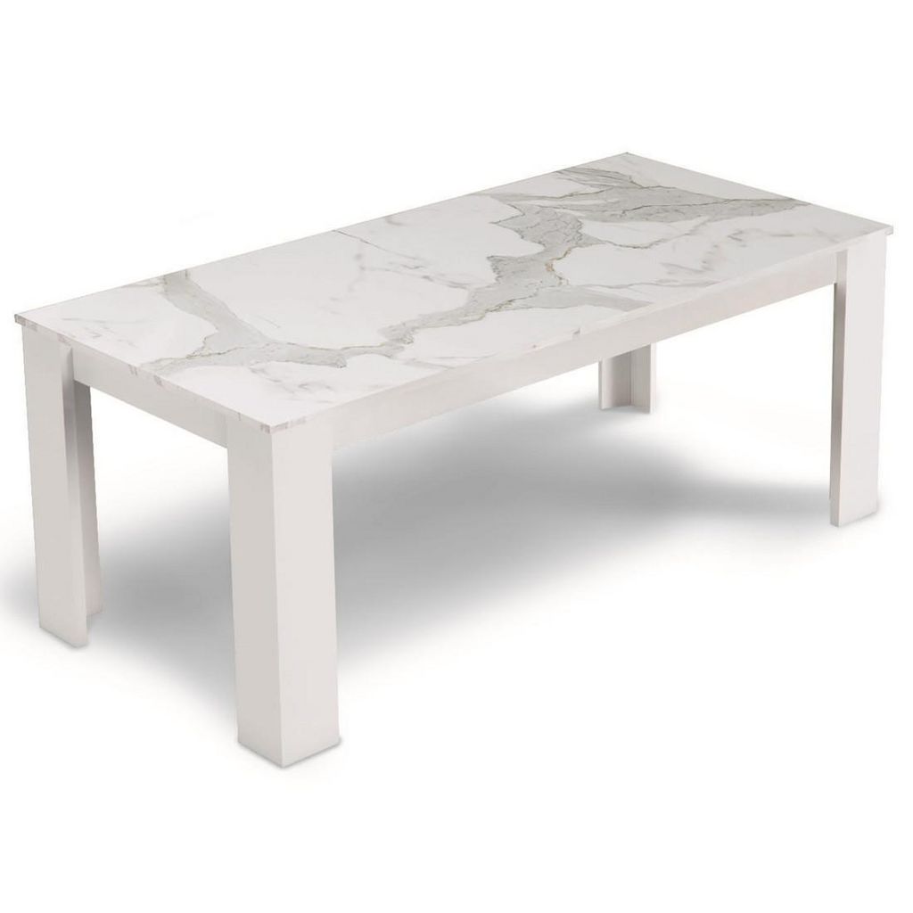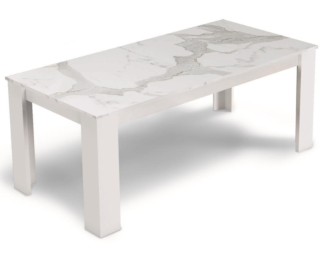 Amaury - table à manger - blanc - plateau effet marbre - 4 à 6 personnes