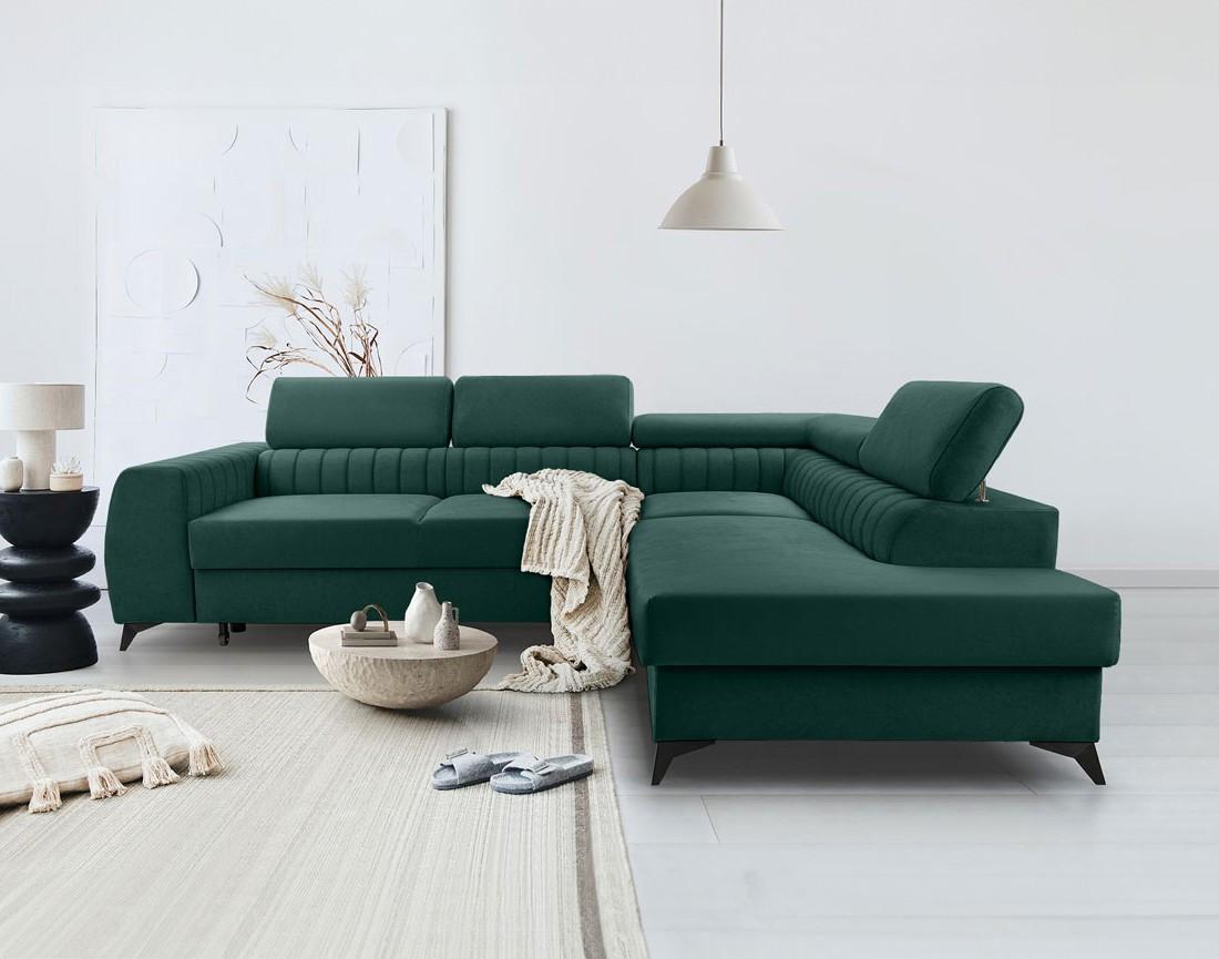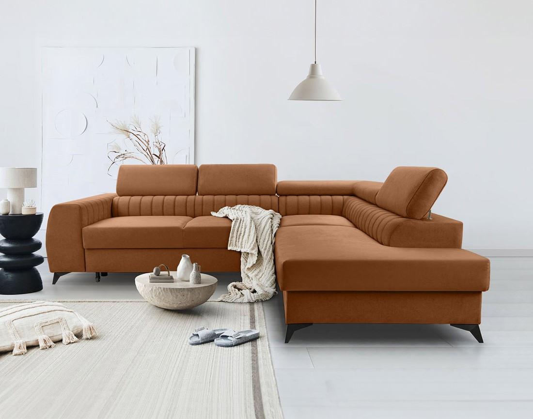 Aneta - canapé d'angle droit 5 places - convertible avec coffre et têtières - en velours