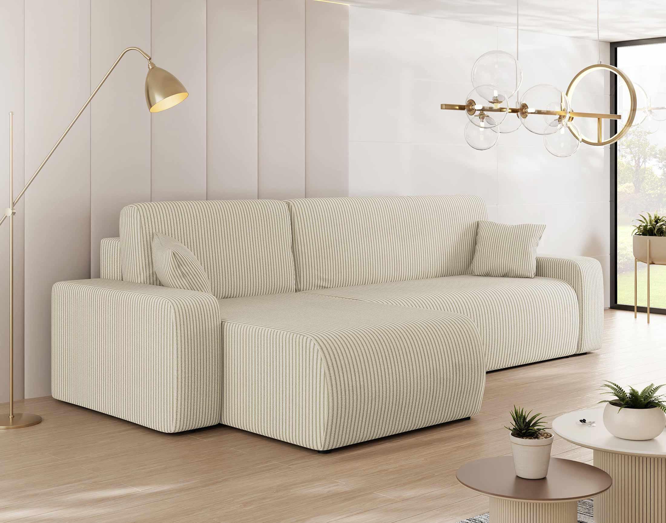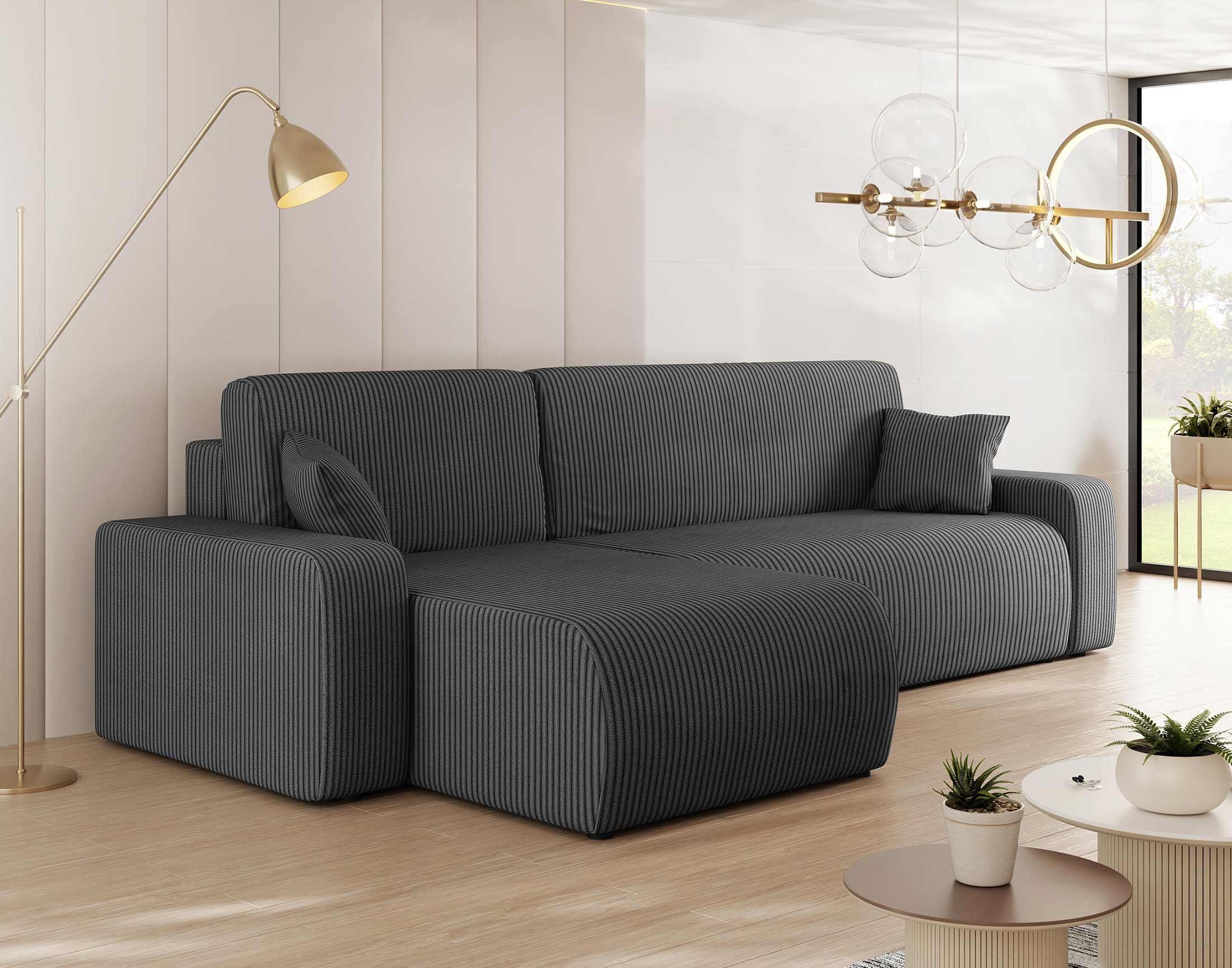 Artemisa - canapé d'angle réversible 4 places - convertible avec coffre - en velours côtelé