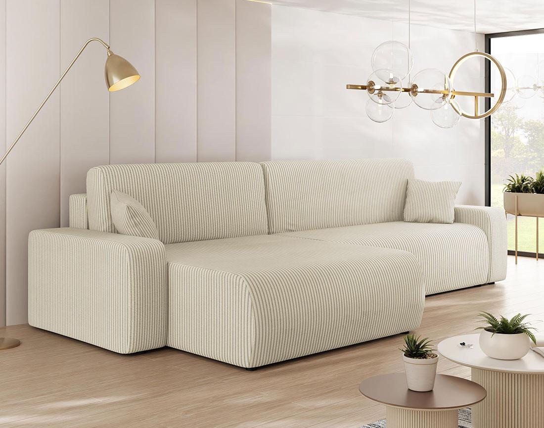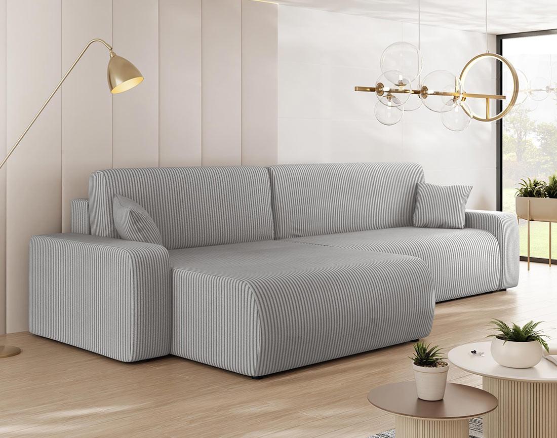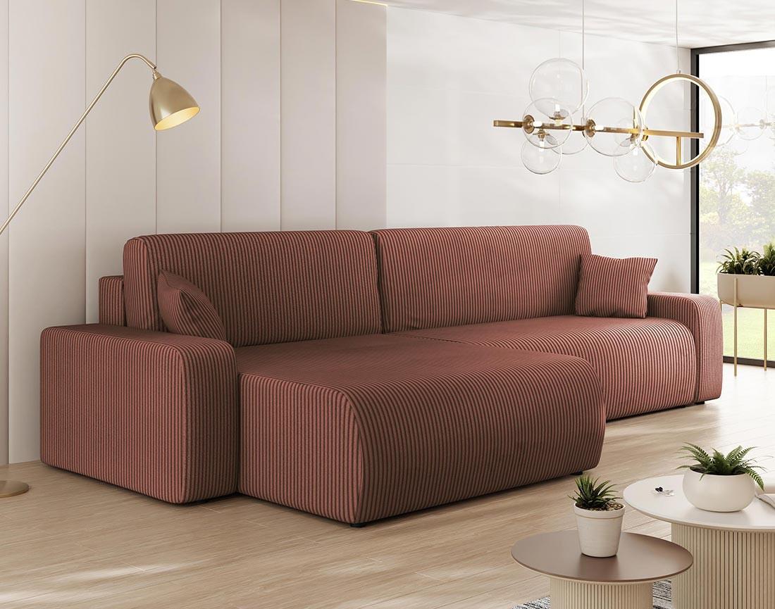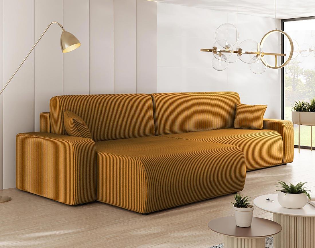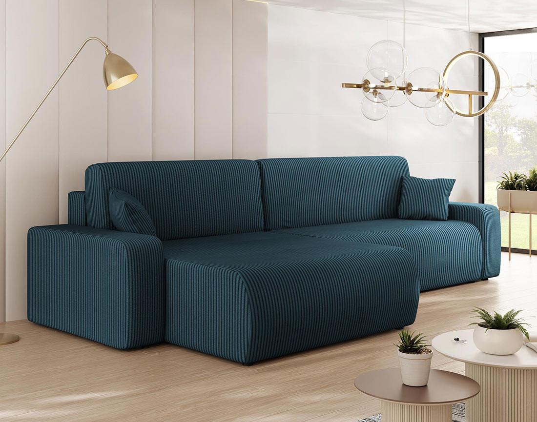 Artemisa - canapé d'angle réversible 5 places convertible avec coffre en velours côtelé