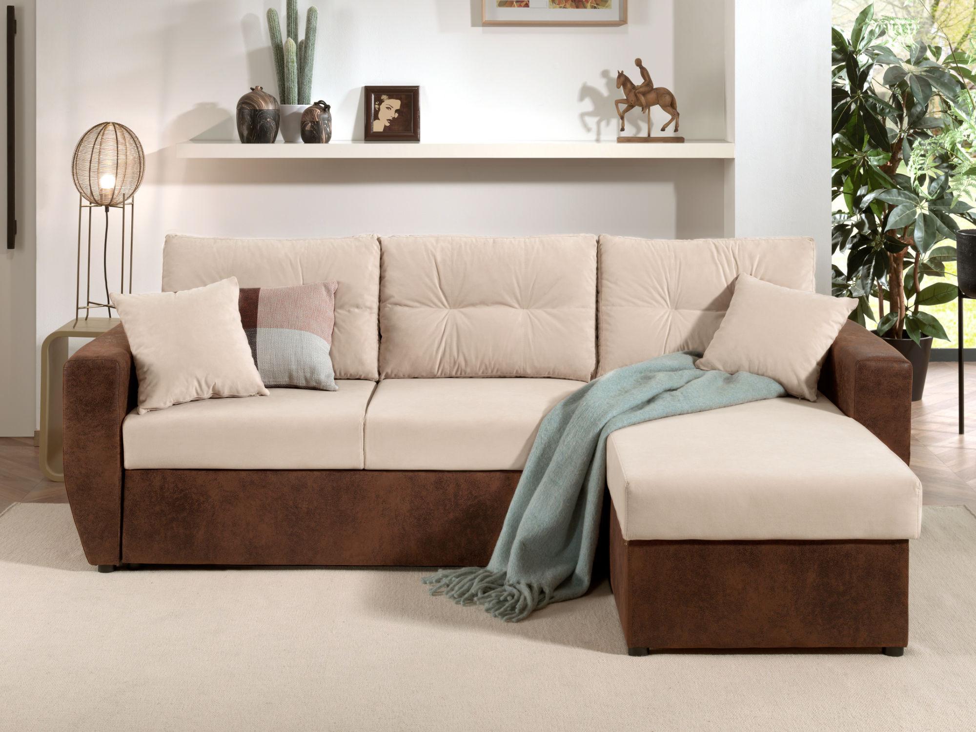 Craquez pour ce canapé d'angle Astoria au doux mélange de couleurs. Un velours beige pour l'assise et les coussins de dossiers. Un tissu en microfibre marron aspect vieilli pour le reste. Ces tissus donnent une allure chic et unique à votre canapé Astoria. Vous pouvez le marier autant dans un intérieur style industriel que contemporain. A votre imagination !