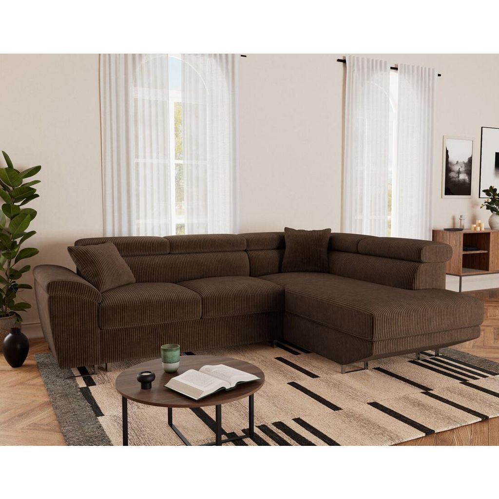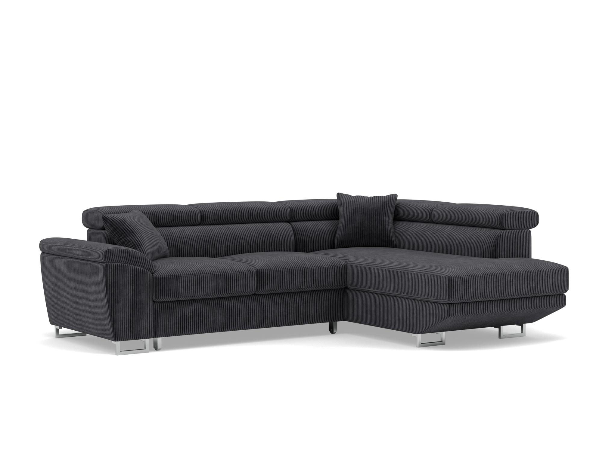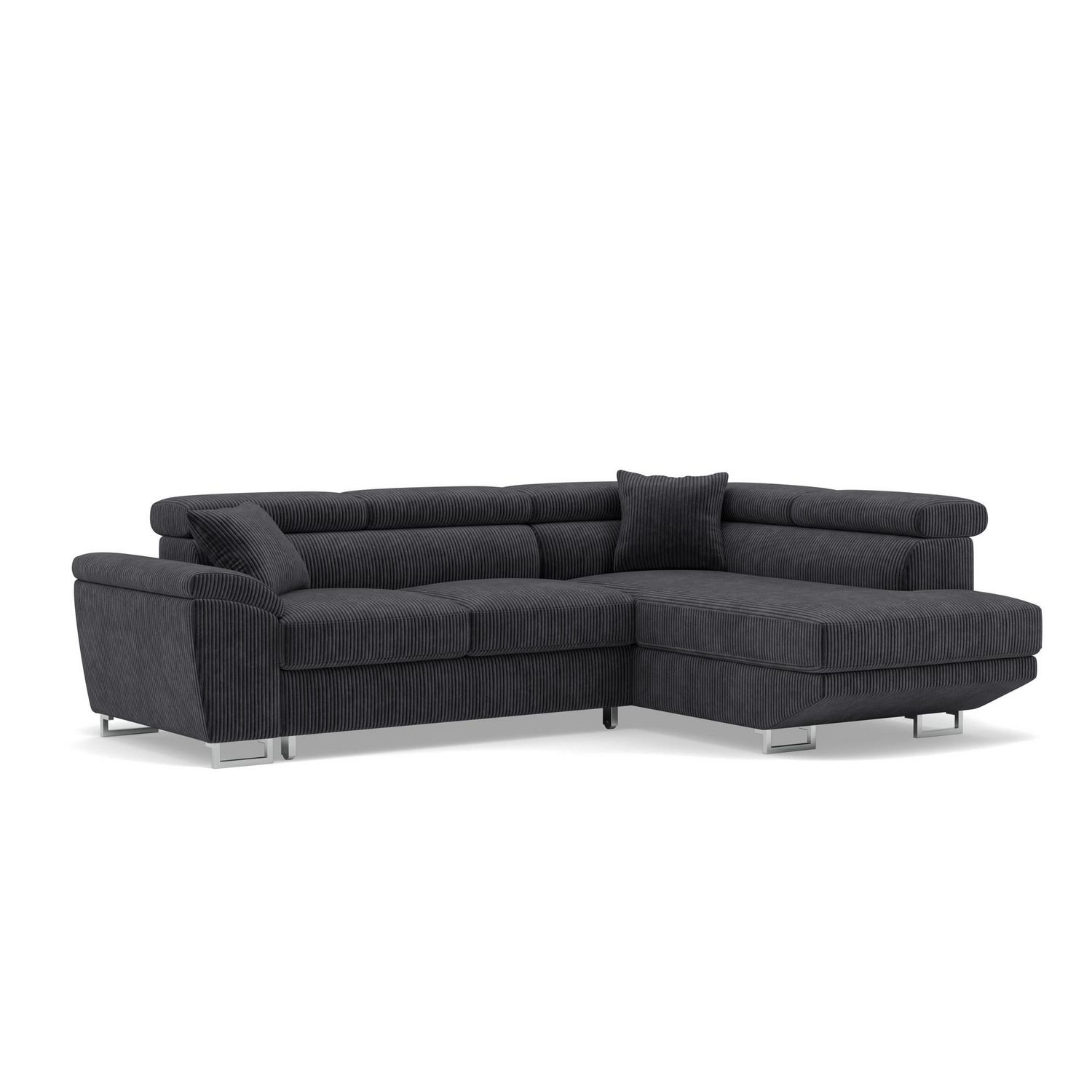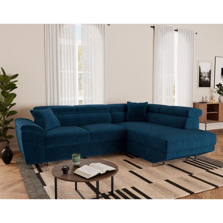 Baoji - canapé d'angle droit 5 places convertible avec têtières et coffre en velours côtelé