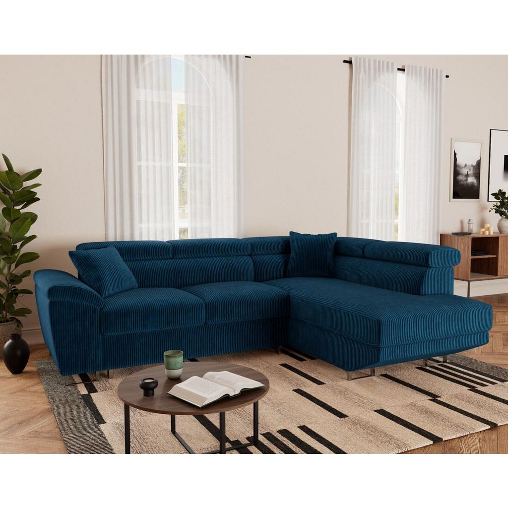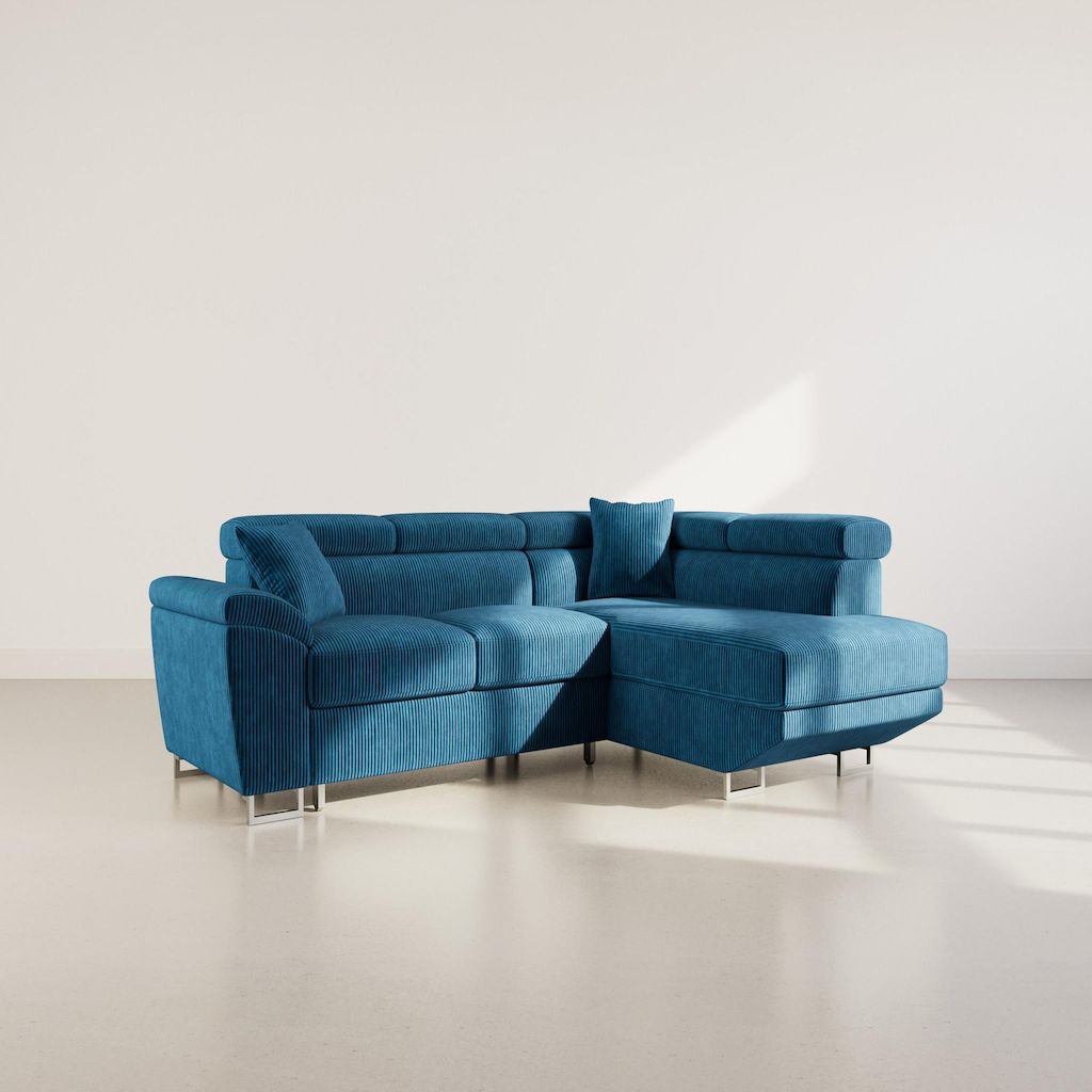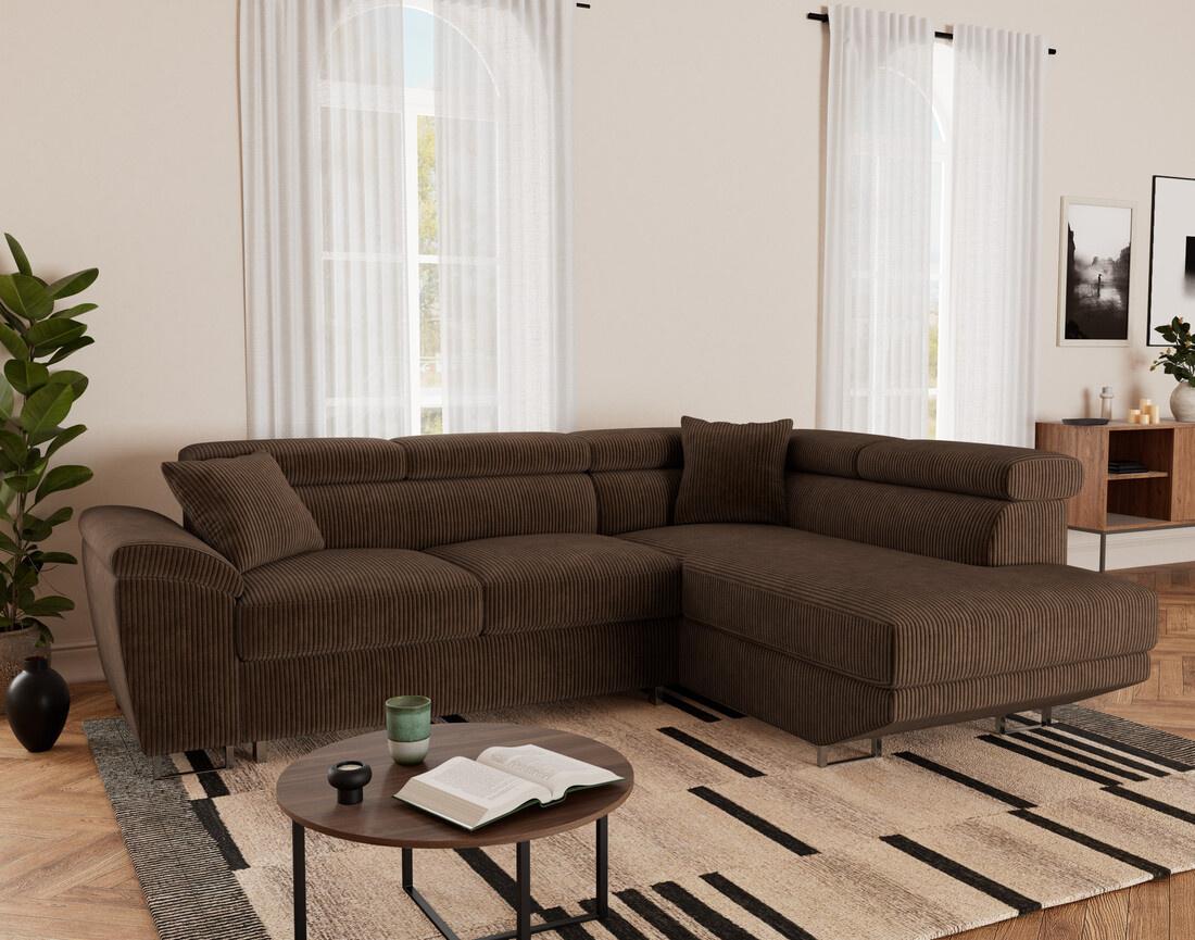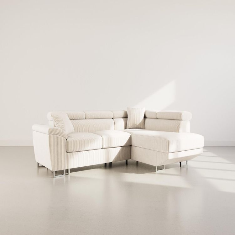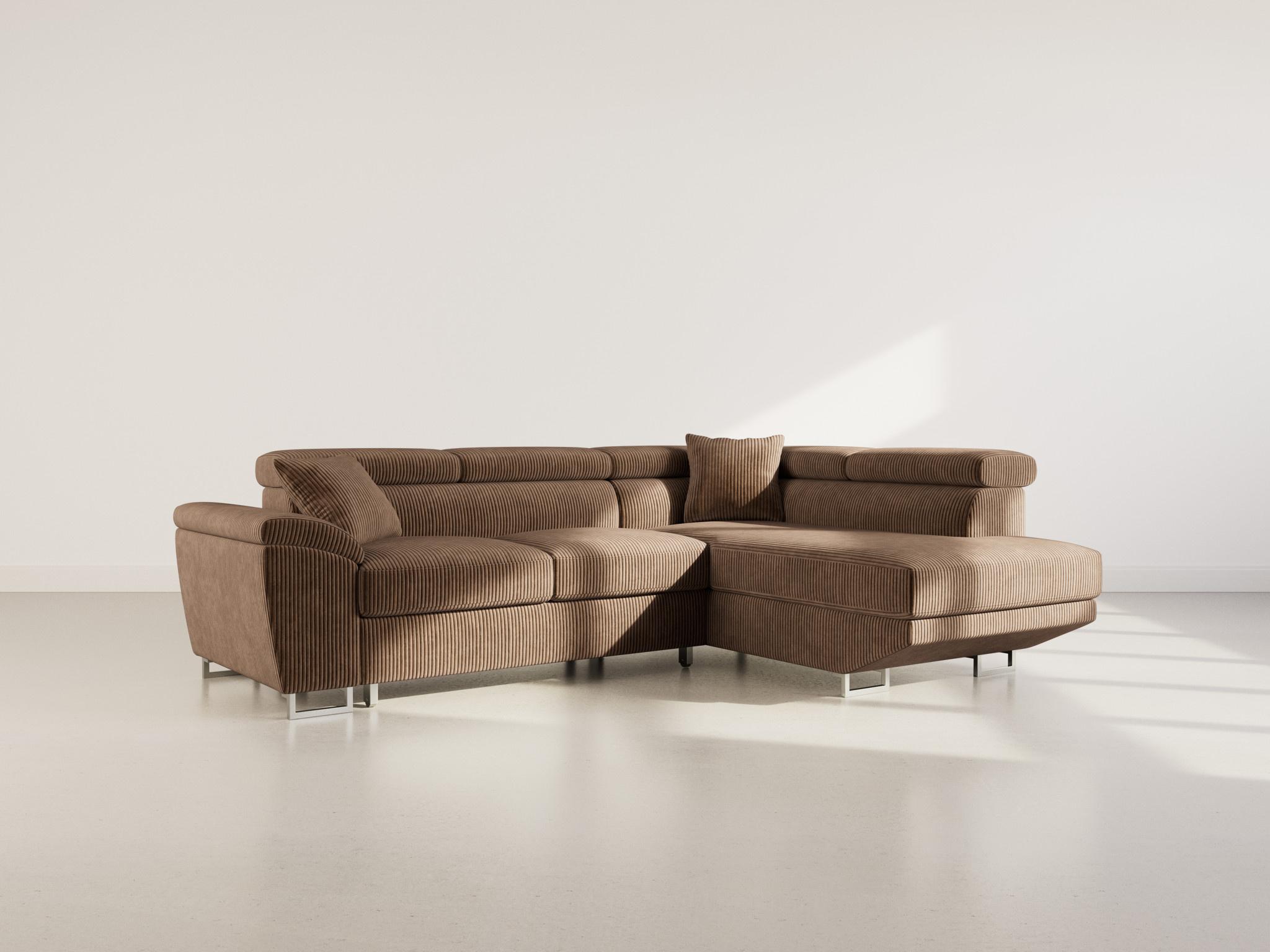 Baoji - canapé d'angle droit 5 places convertible avec têtières et coffre en velours côtelé