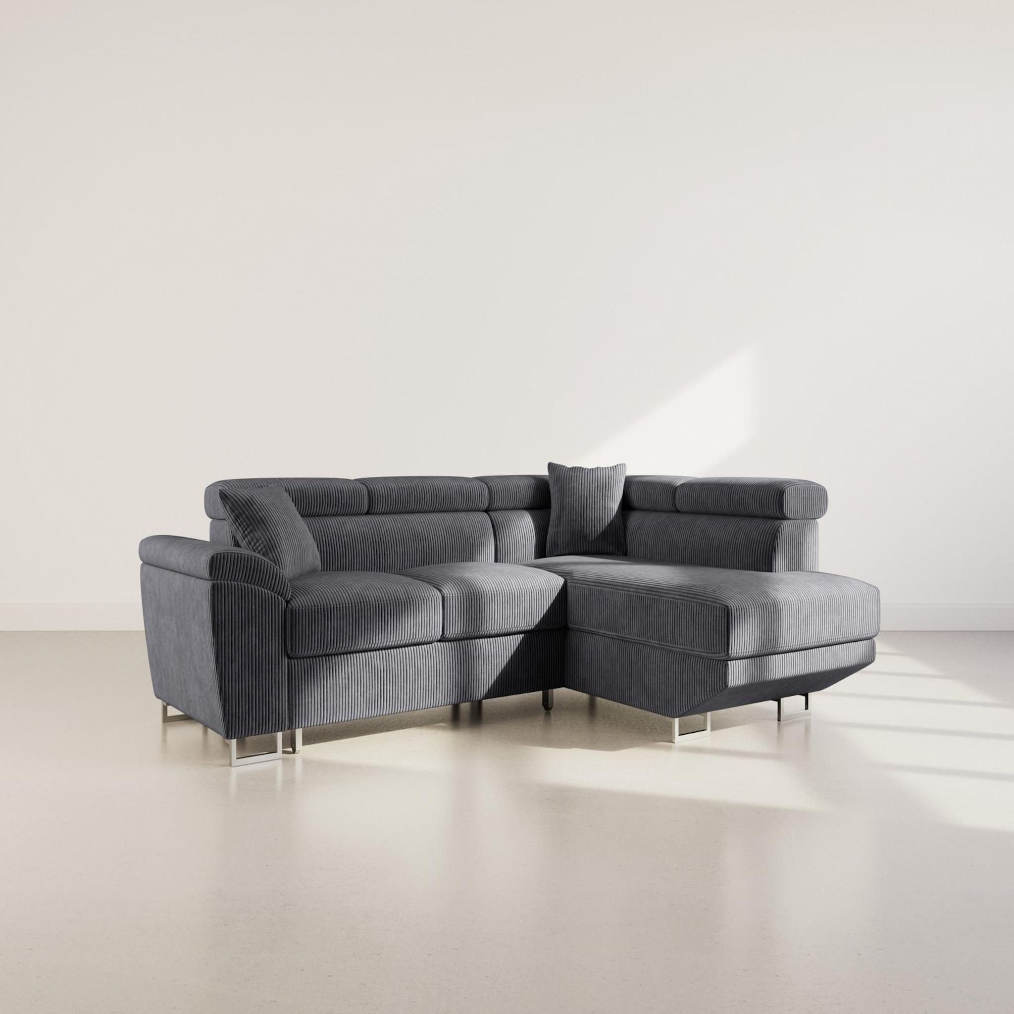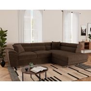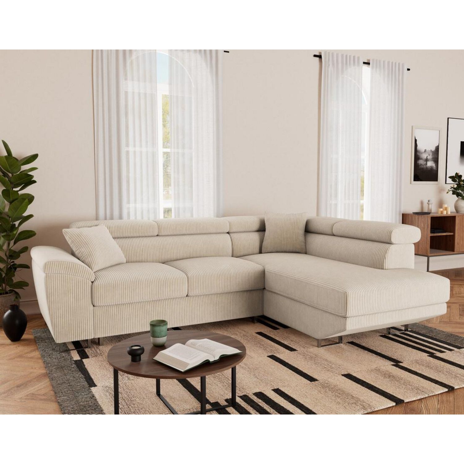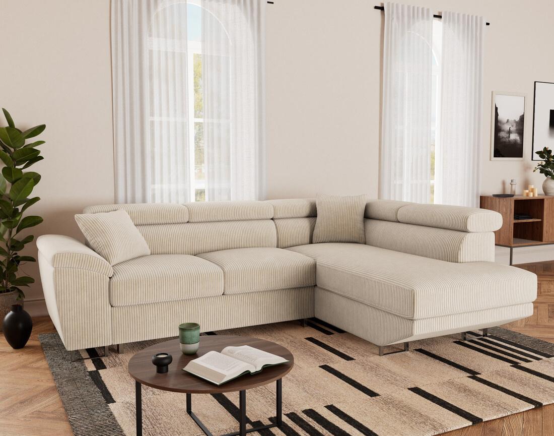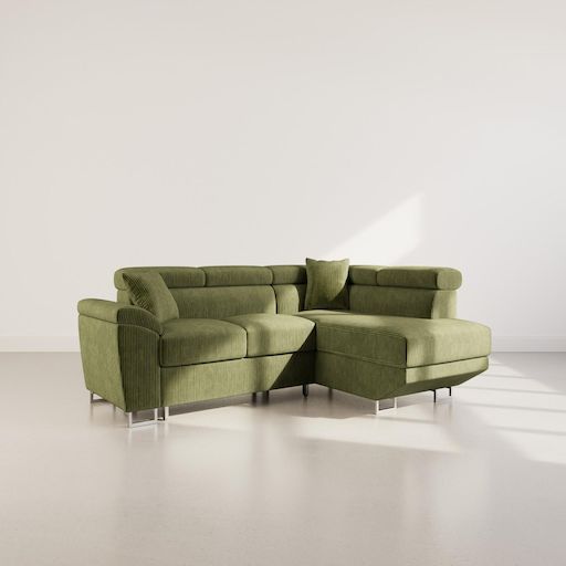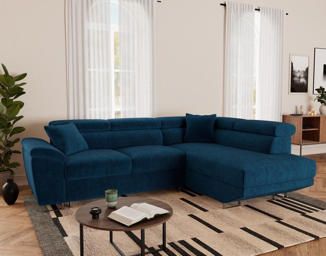Baoji - canapé d'angle droit 5 places convertible avec têtières et coffre en velours côtelé