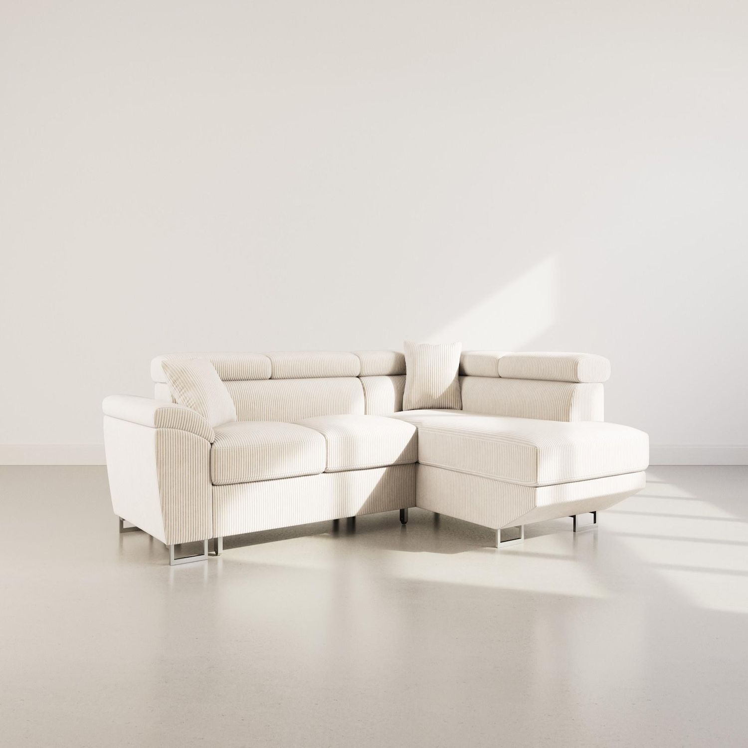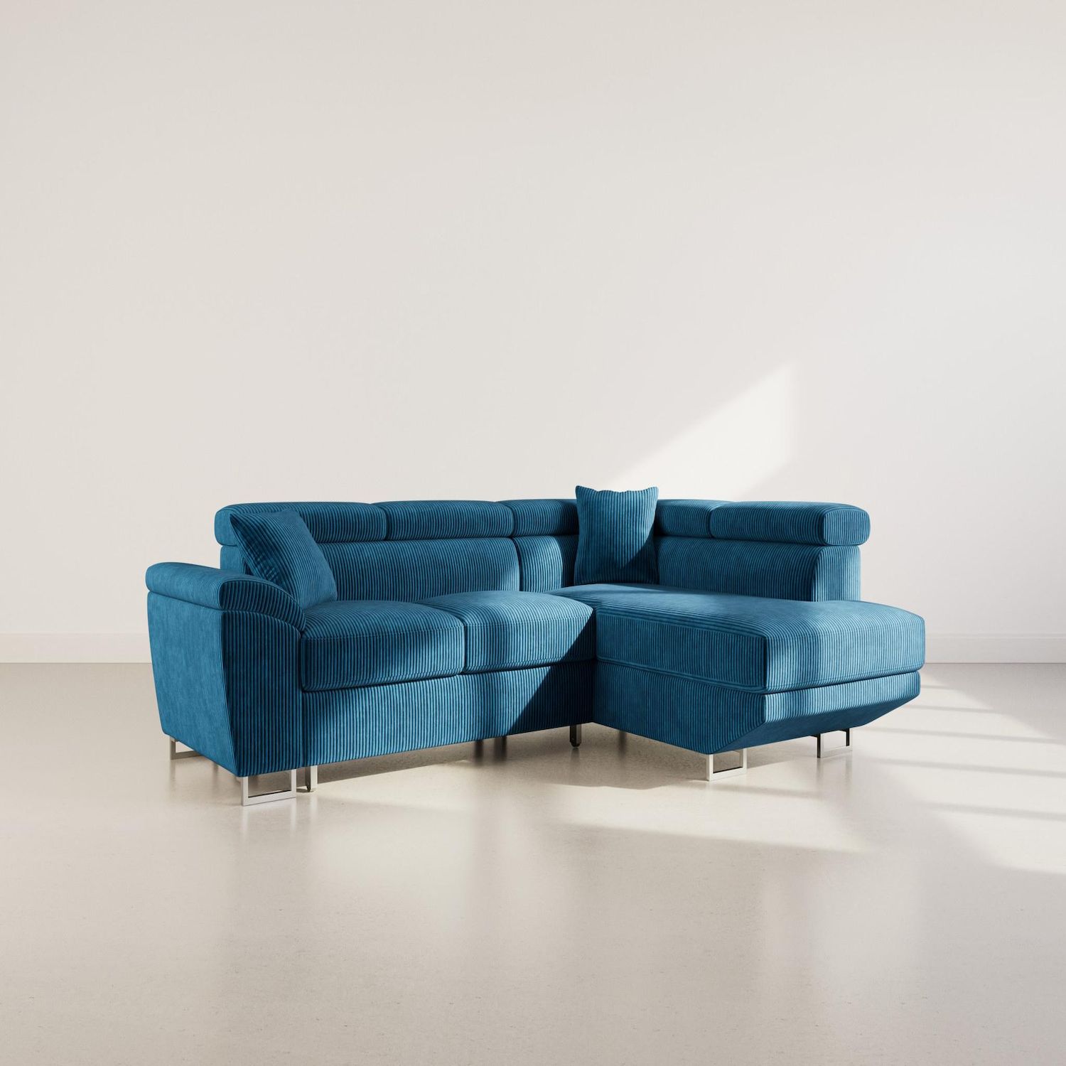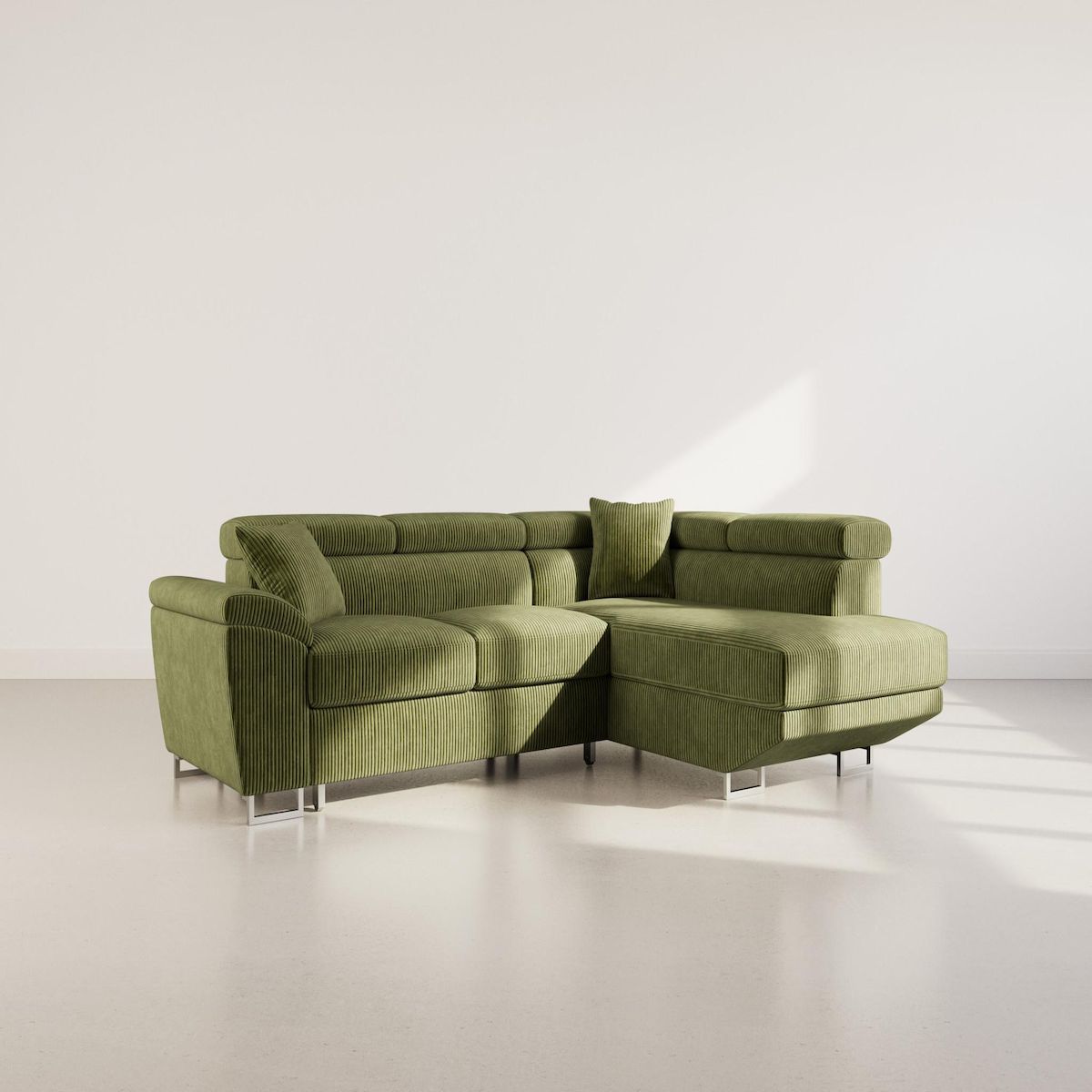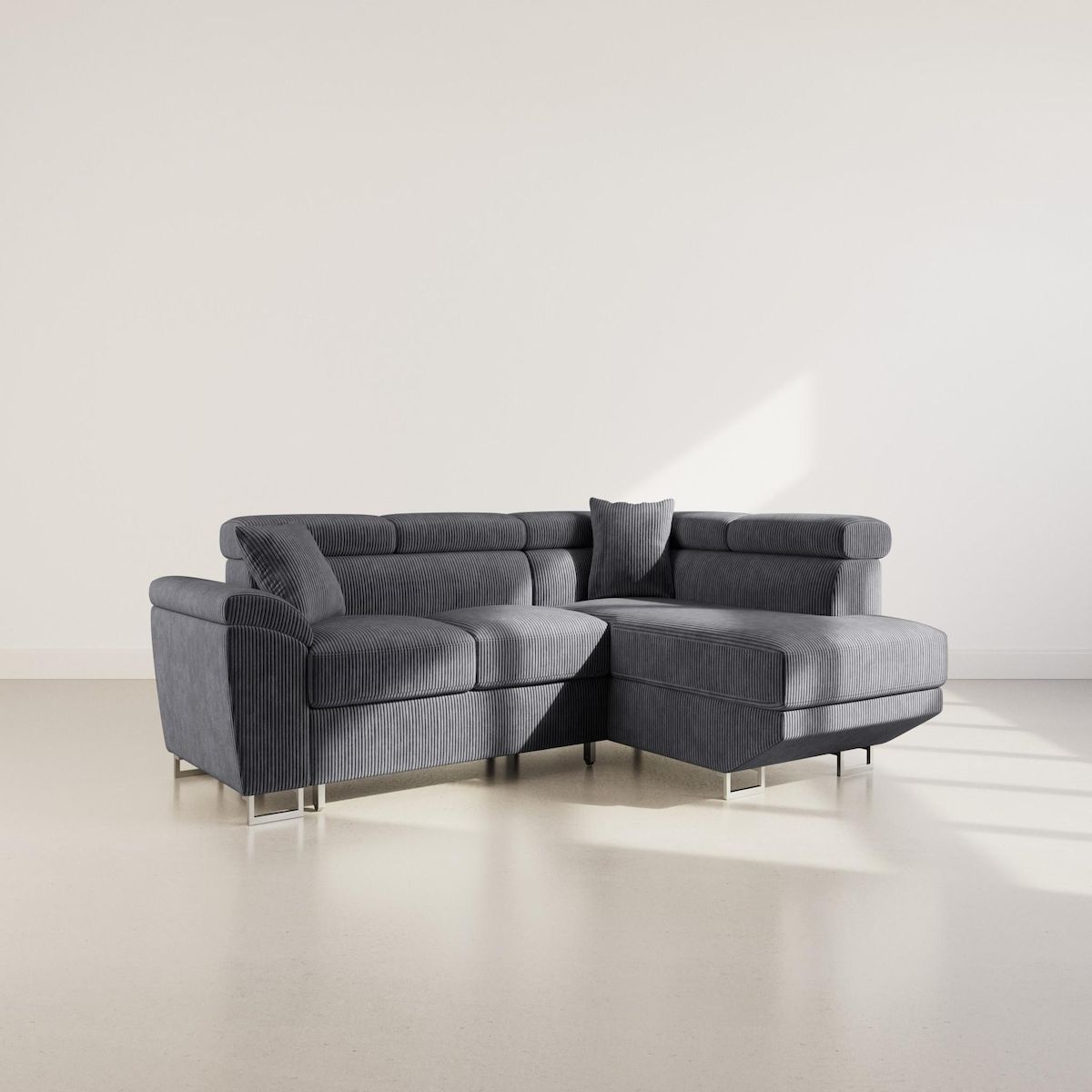 Apportez du caractère à votre intérieur avec le Baoji, un canapé d'angle droit 5 places conçu pour allier style et praticité. Son revêtement en velours côtelé offre une texture raffinée et un esprit chaleureux, tandis que ses pieds hauts en métal chromé lui donnent une touche sophistiquée et alte. Ses têtières ajustables permettent un maintien personnalisé, garantissant un soutien optimal pour vos moments de détente.